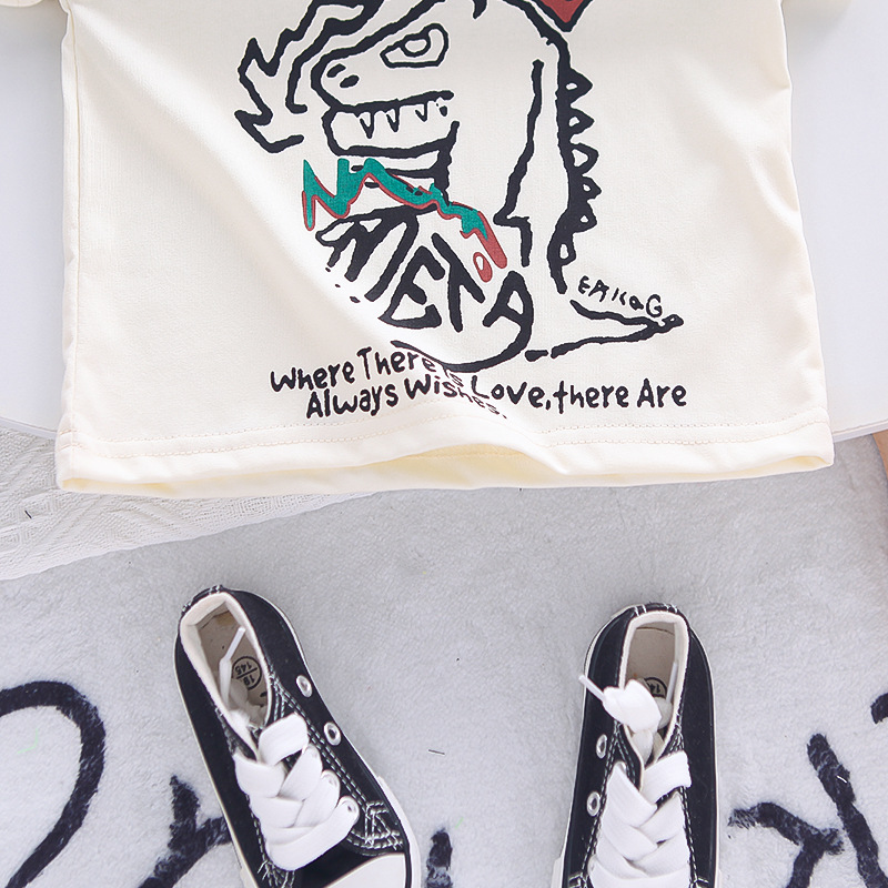남자들의 여름 서양식 인터넷 인기 반팔 세트 2025 신여름 어린이 왕관 공룡 반팔 세트 유행