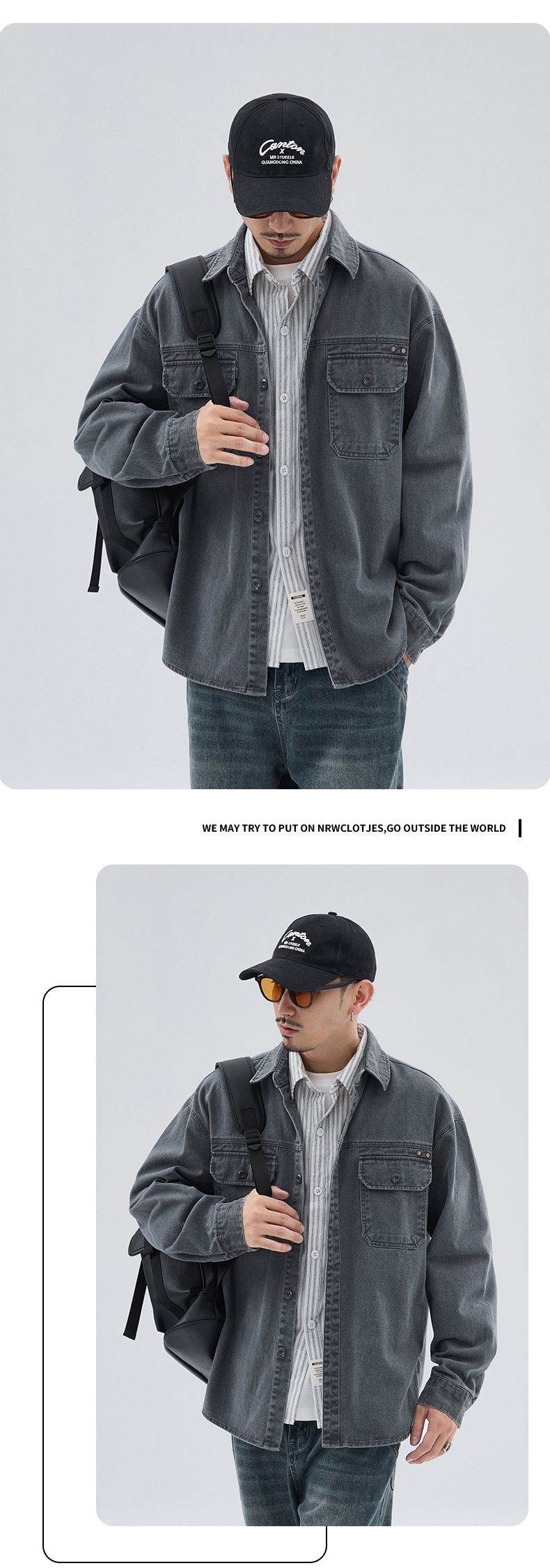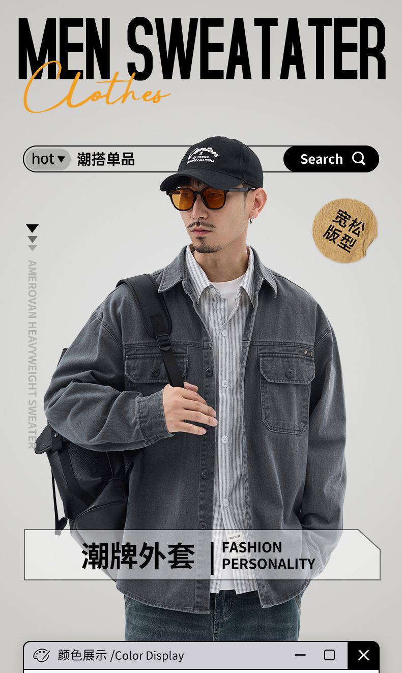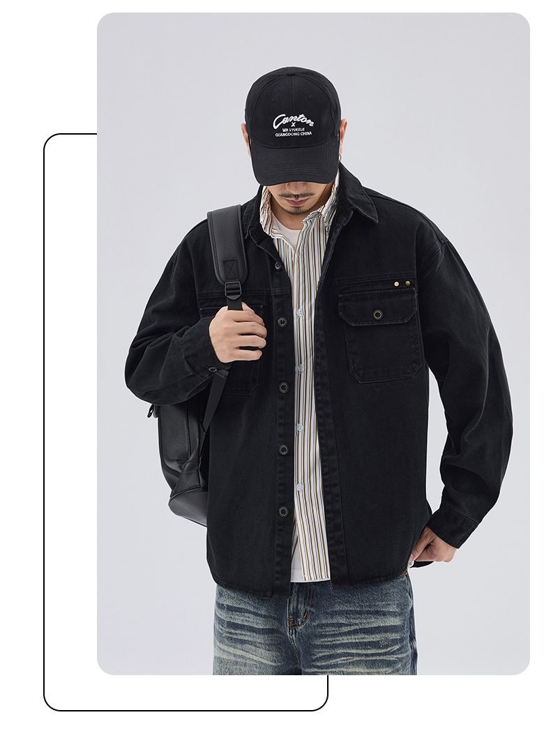 상구 남자 봄 새 스타일 작업복 재킷 셔츠 재킷 남자 일본 스타일 느슨한 캐주얼 데님 셔츠스토어 가기
