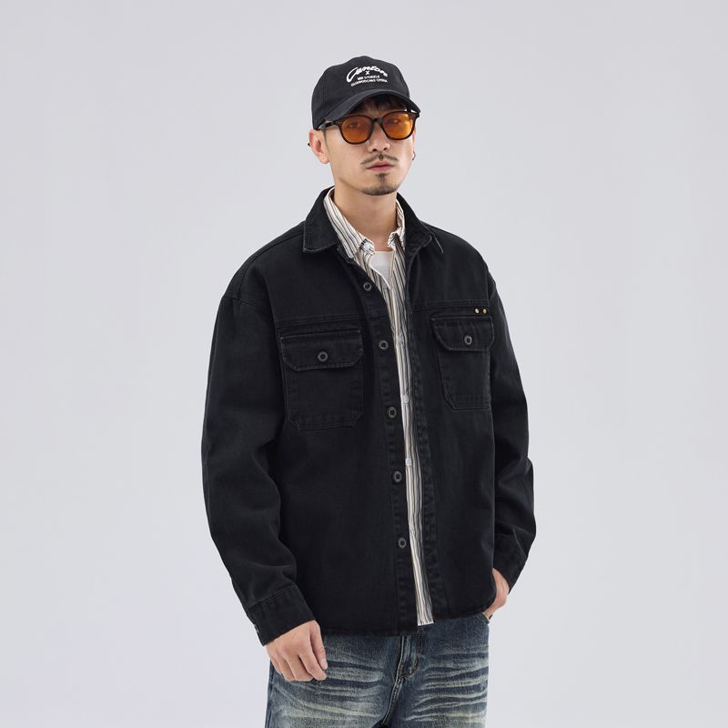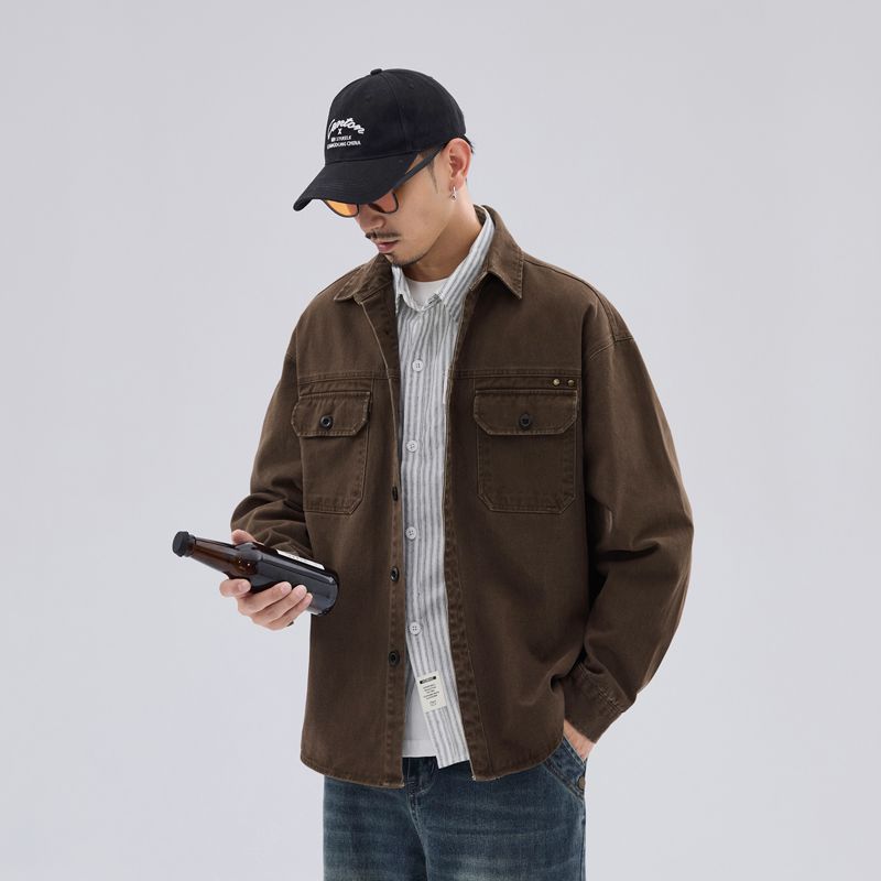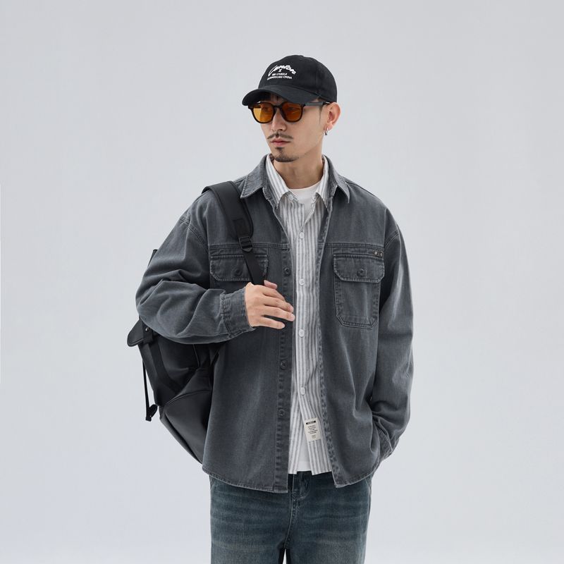 상구 남자 봄 새 스타일 작업복 재킷 셔츠 재킷 남자 일본 스타일 느슨한 캐주얼 데님 셔츠