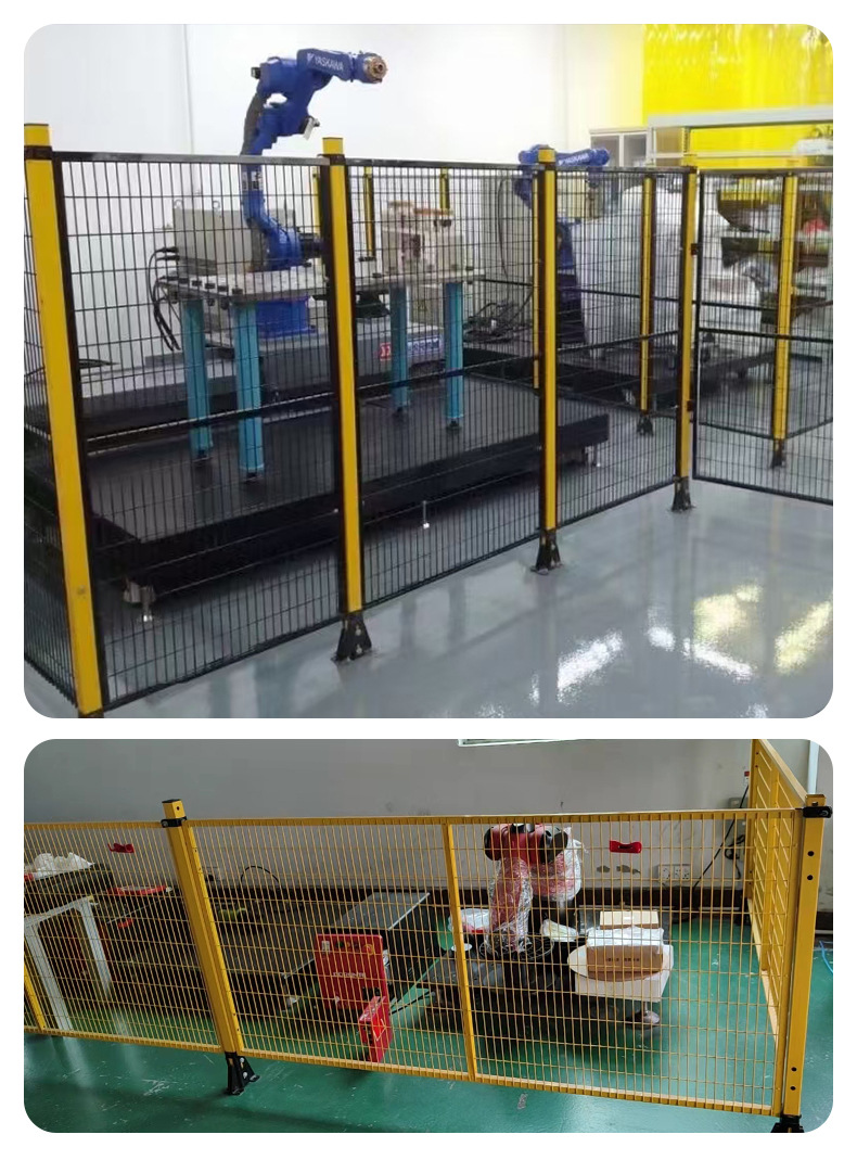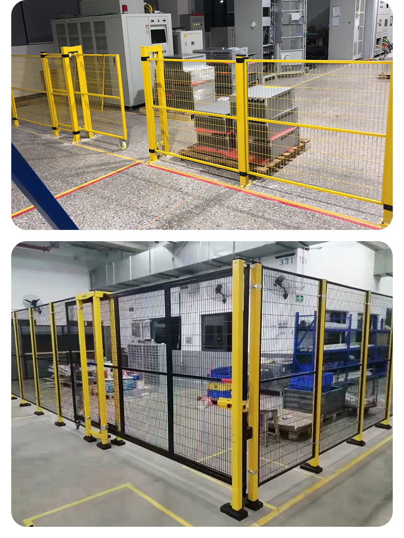 자동화 로봇 울타리 메쉬 가드 레일 노란색 이동식 공장 작업장 장비 안전 가드 레일 도매