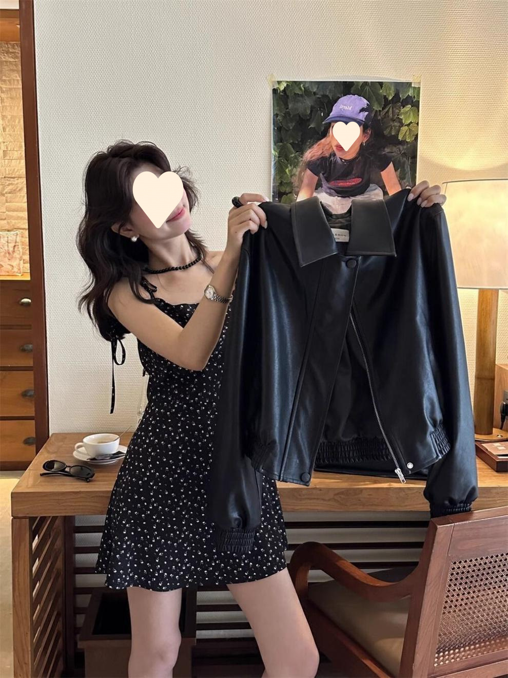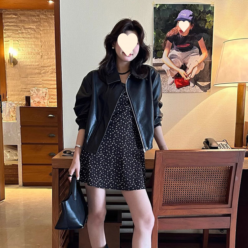 블랙 PU 가죽 자켓 여성의 2025 년 봄과 가을 새로운 미국 스타일 스티칭 레트로 바이커 재킷 프라이드 스트리트 자켓 여성용 탑