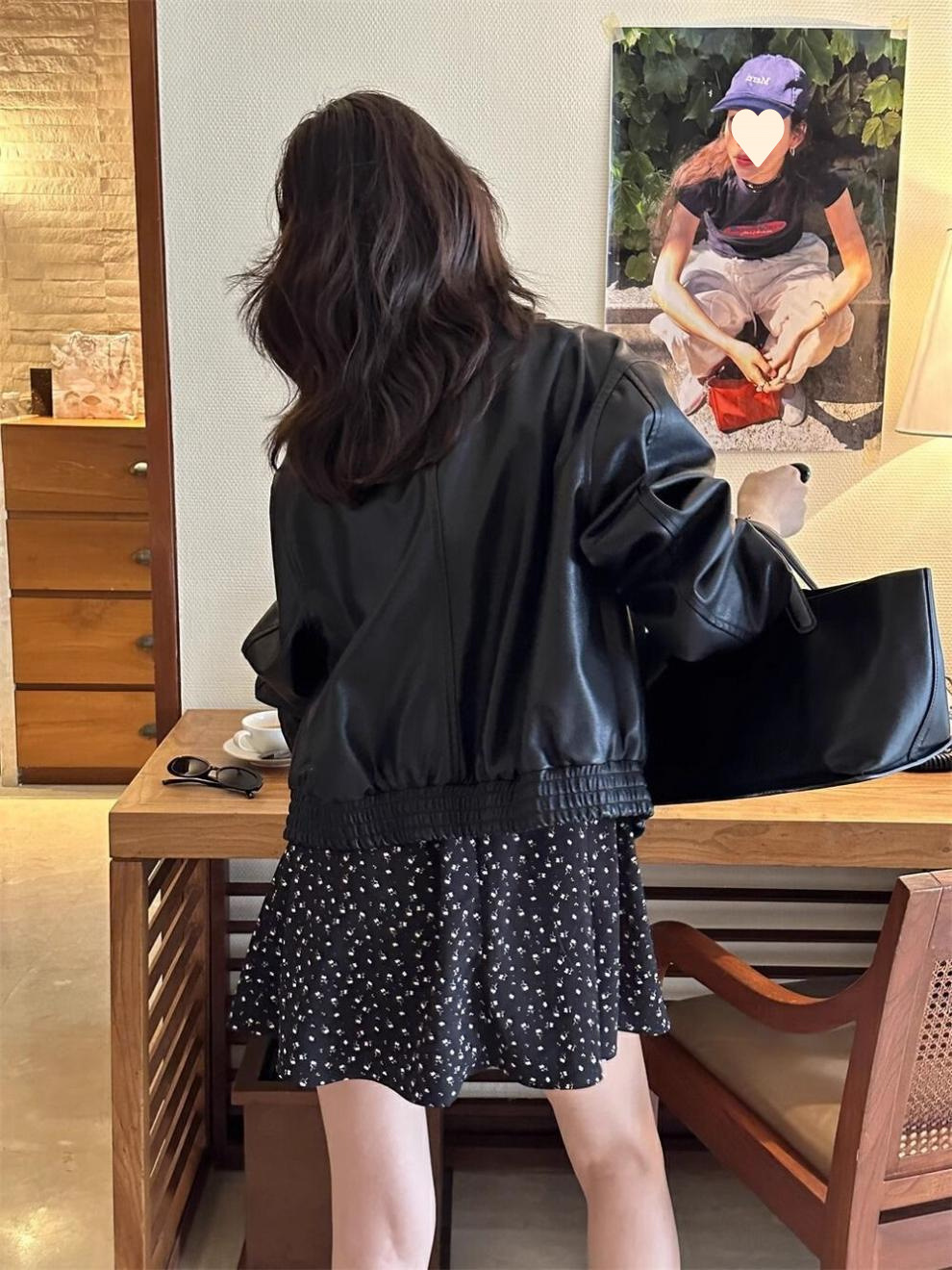 블랙 PU 가죽 자켓 여성의 2025 년 봄과 가을 새로운 미국 스타일 스티칭 레트로 바이커 재킷 프라이드 스트리트 자켓 여성용 탑스토어 가기