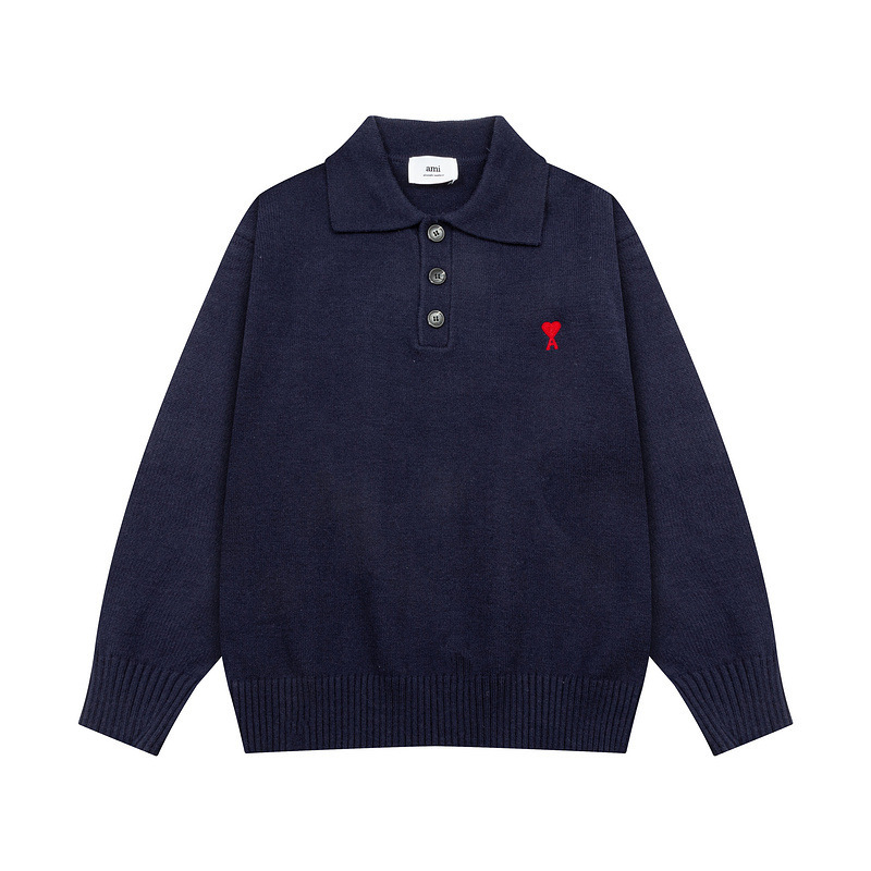 2025 새로운 일본 사랑 POLO 칼라 스웨터 남녀 느슨한 패션 올 매치 옷깃 스웨터
