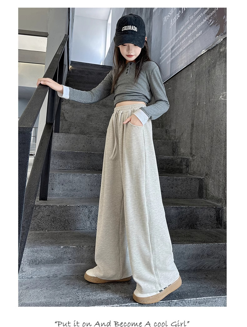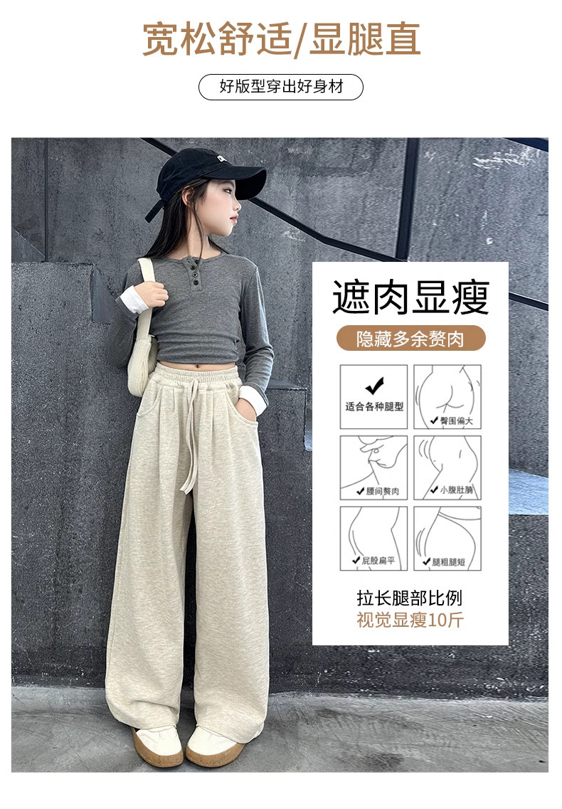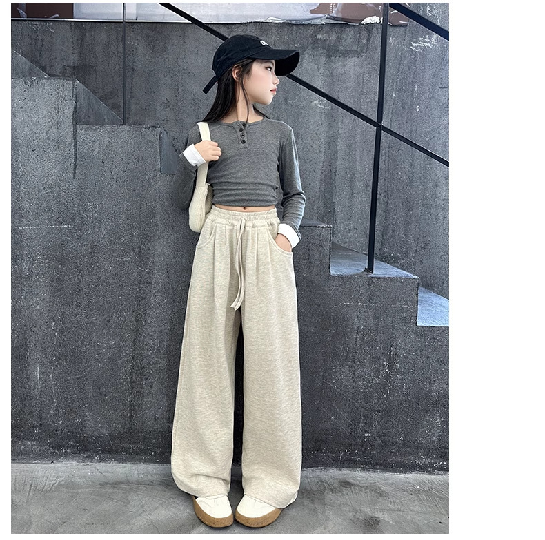 소녀 넓은 다리 바지 봄과 가을 2025 새로운 서양식 어린이 펜던트 캐주얼 바지 큰 어린이 가을 겨울 패션 찹쌀 바지스토어 가기