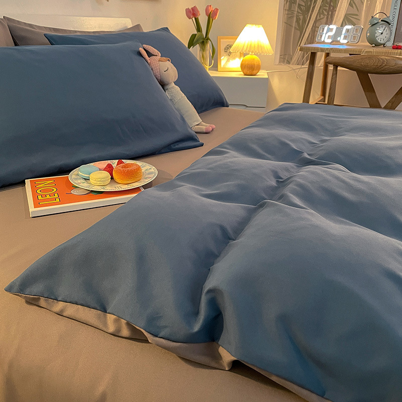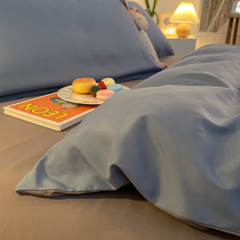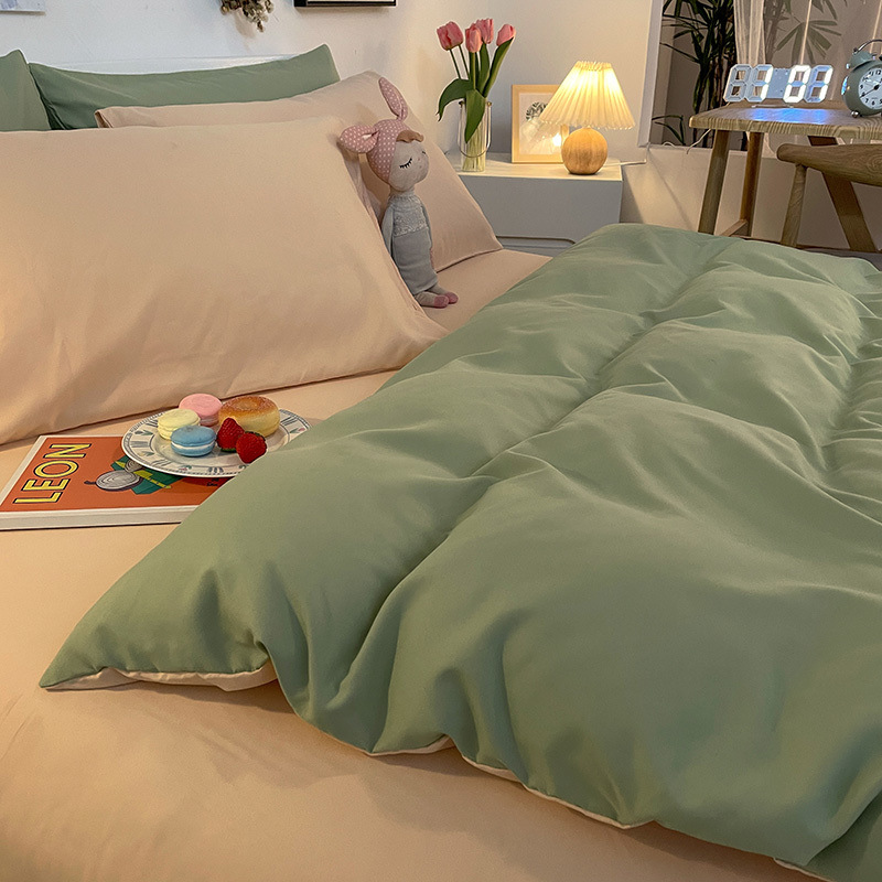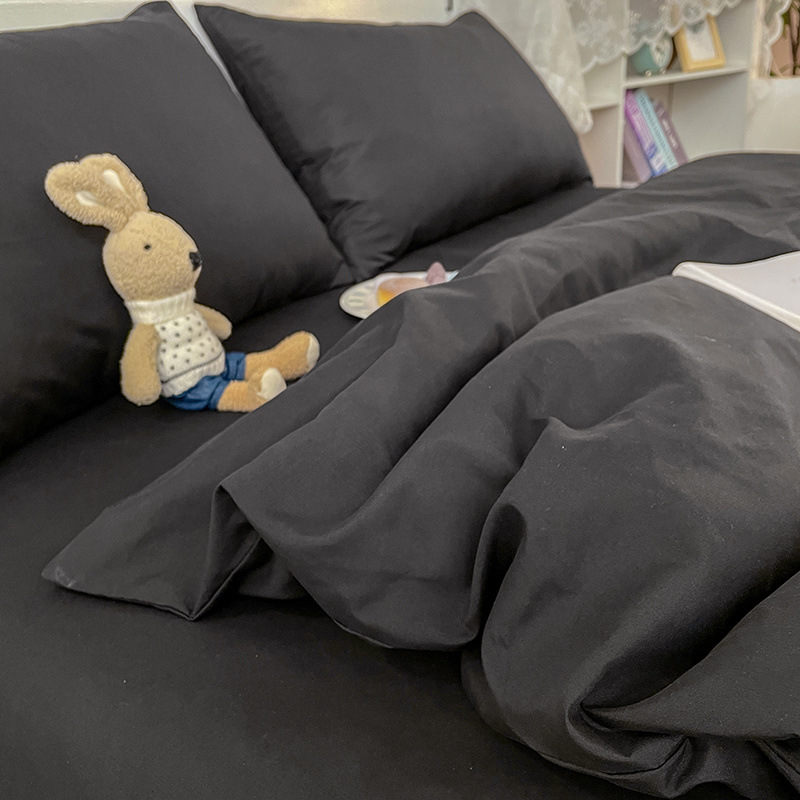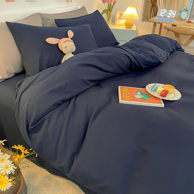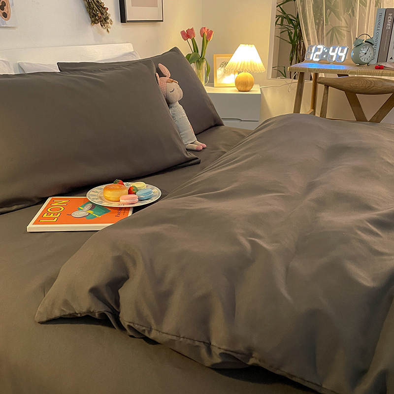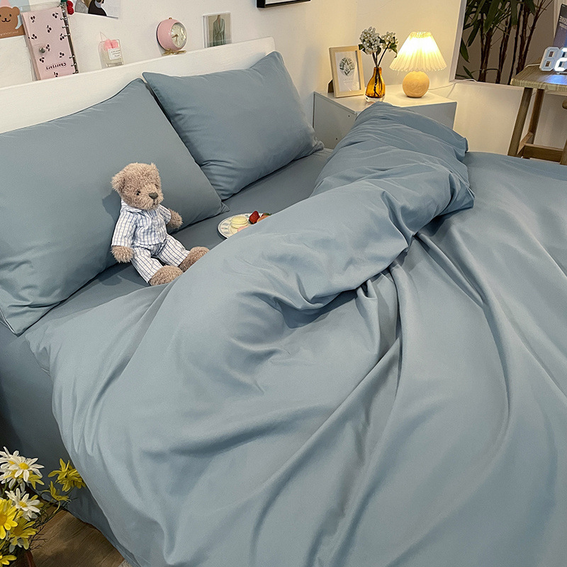 솔리드 컬러 신선한 세척 코튼 4 피스 세트 4 시즌 퀼트 커버 싱글 더블 침대 시트 퀼트 커버 학생 기숙사 3 피스 세트스토어 가기