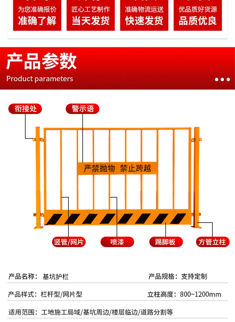 건설 현장 기초 벼랑 울타리 경고 울타리 이동식 고정형 울타리 도로 도로 가장자리 안전 건설스토어 가기