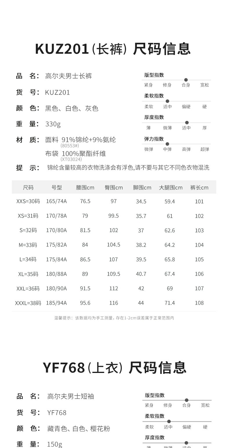 名 称 高尔夫男士长裤 货 号 KUZ201