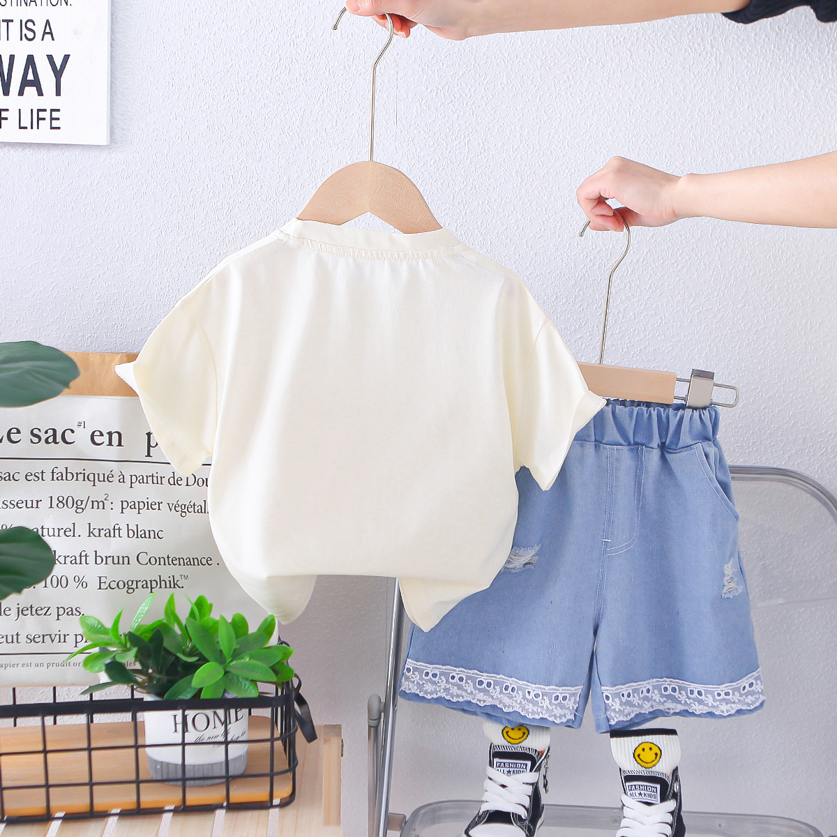 여자 여름 서양식 인터넷 인기있는 반팔 세트 2025 새로운 여름 어린이 곰 머리 풍선 반팔 세트 트렌디스토어 가기