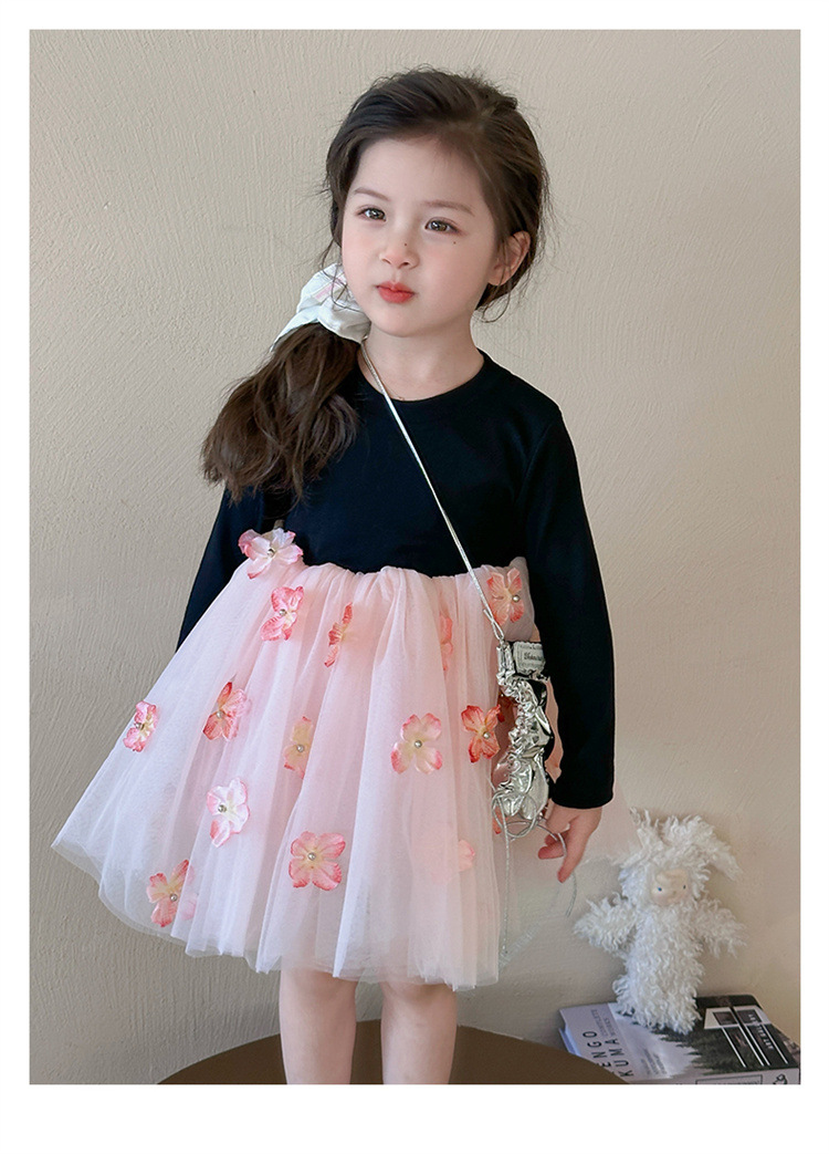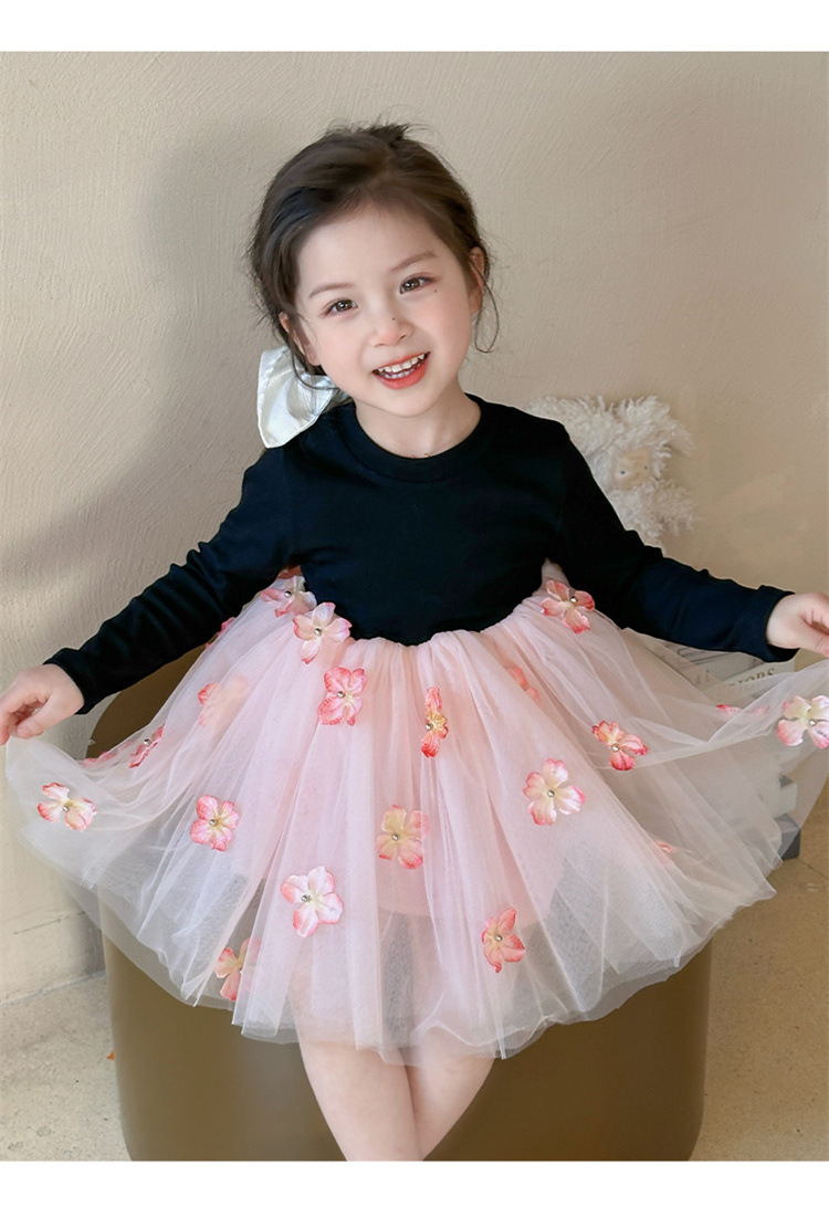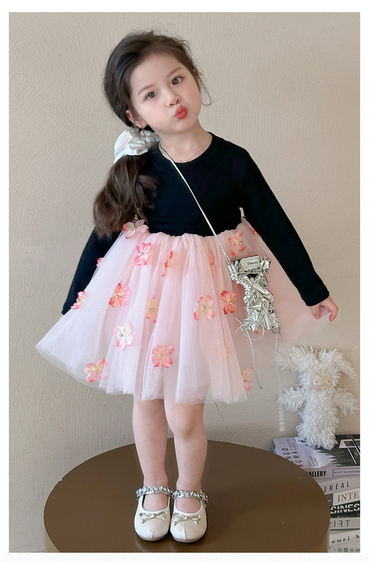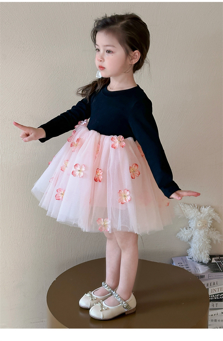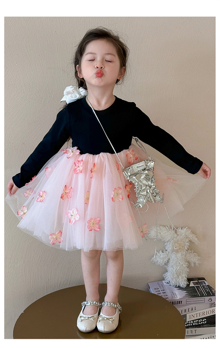 소녀 2025 봄 새로운 스티칭 3 차원 꽃 거즈 스커트