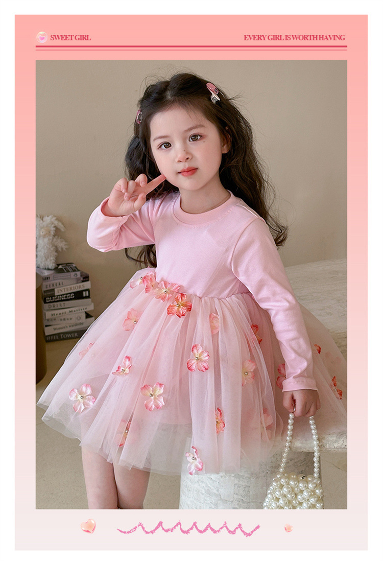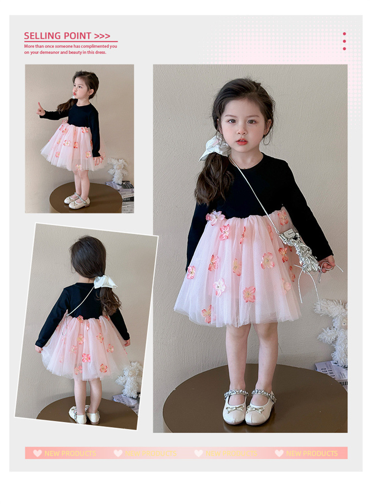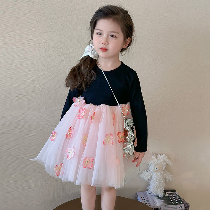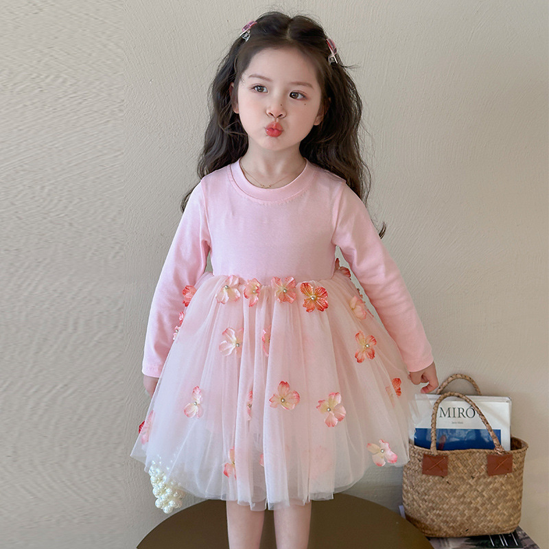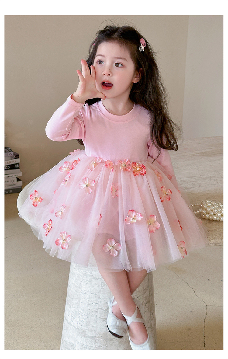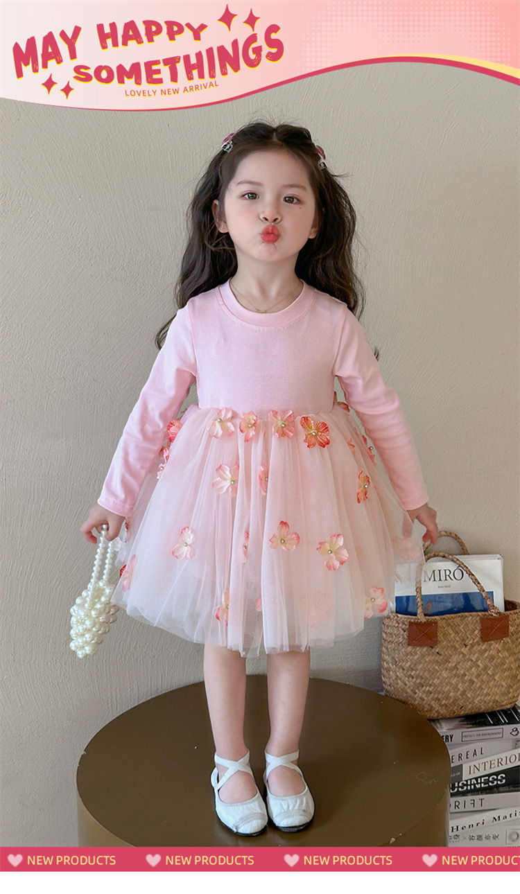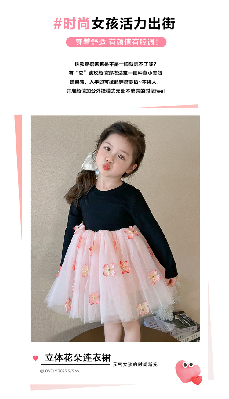 소녀 2025 봄 새로운 스티칭 3 차원 꽃 거즈 스커트스토어 가기