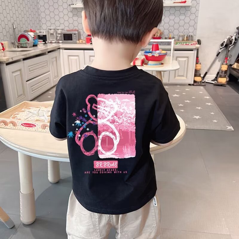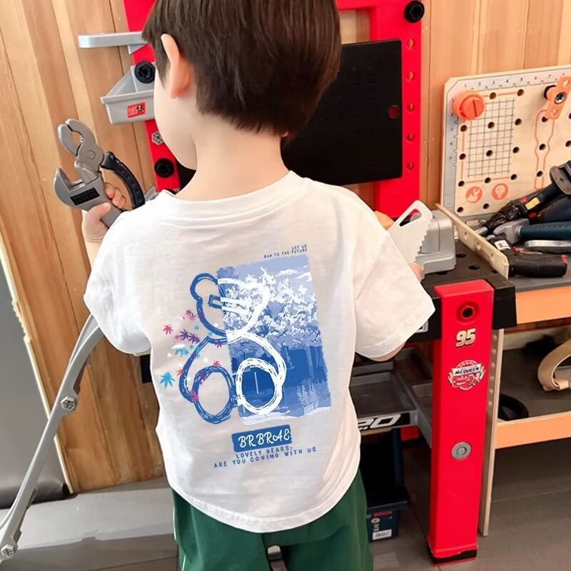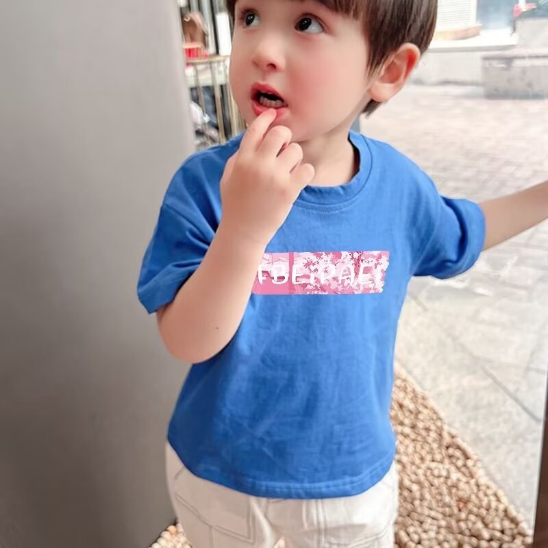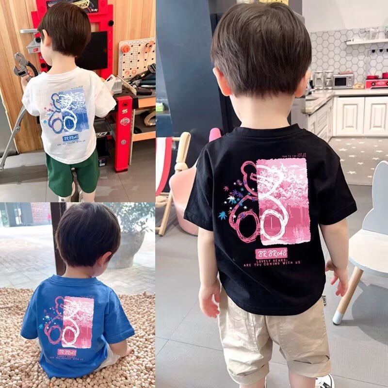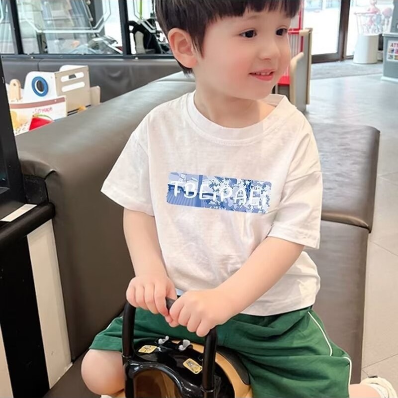 소년 반소매 티셔츠 2025 새로운 어린이 의류 탑 어린이 여름 패션 의류 여름 옷 소년 반소매 티셔츠