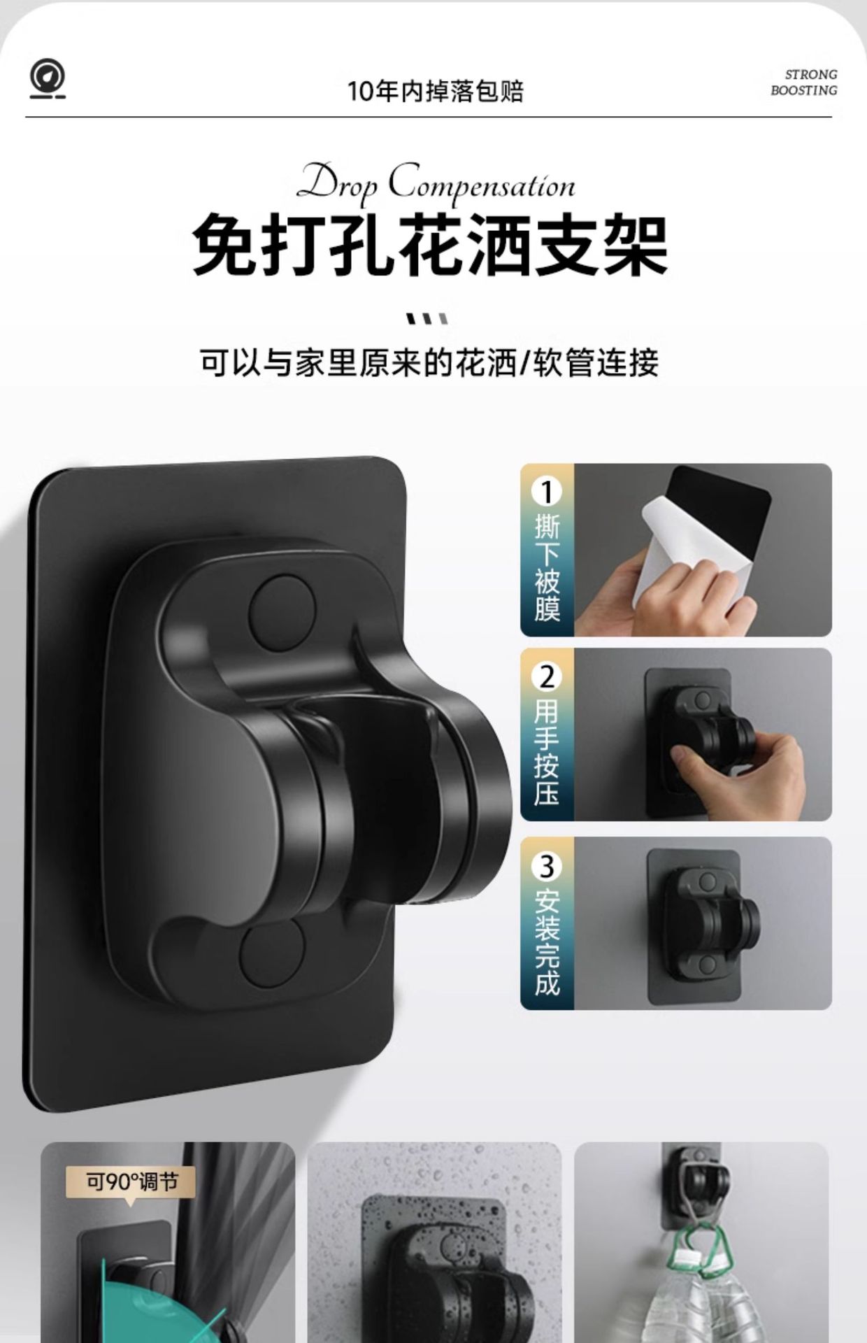 • [블랙세트3] 6단 슈퍼차저 샤워기 + 펀치프리 브라켓