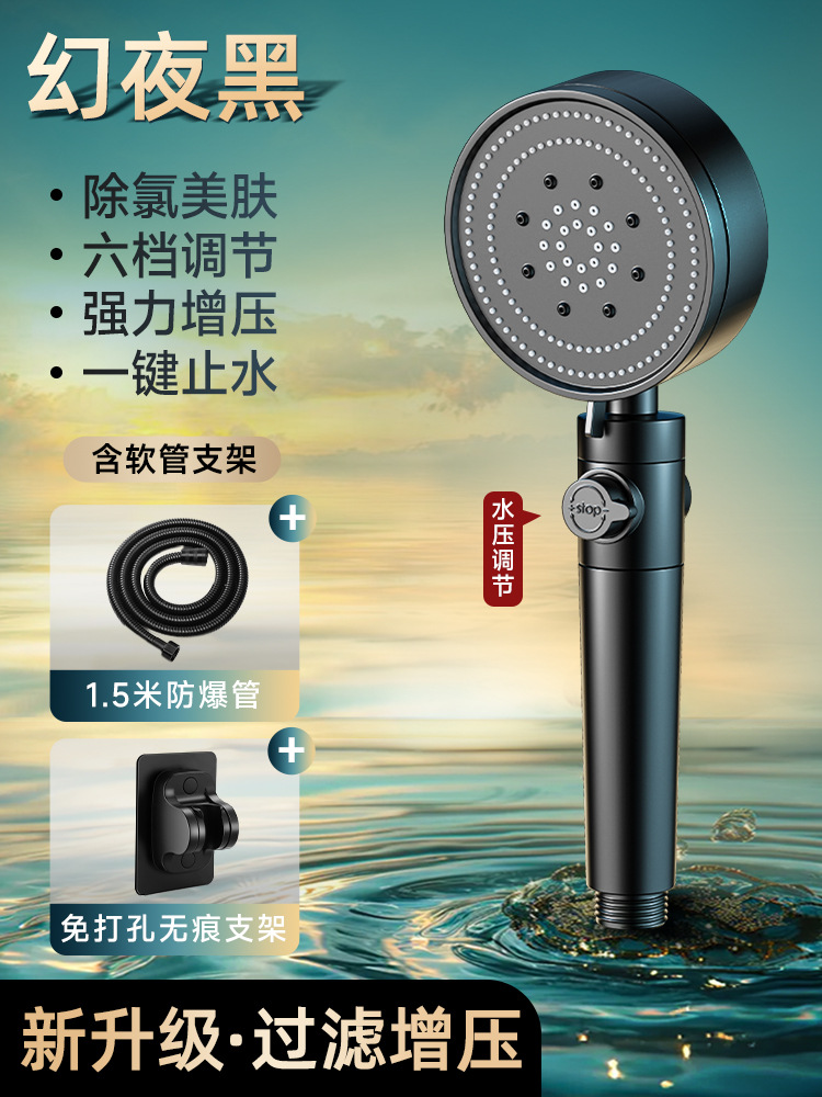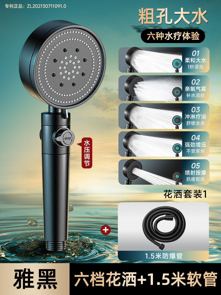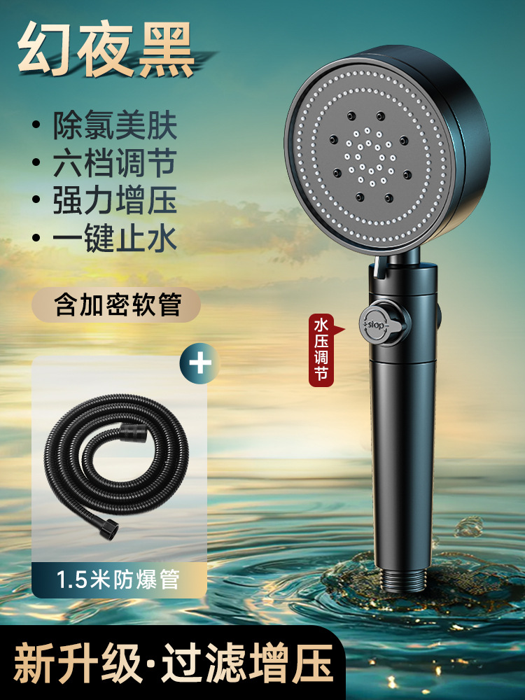 • [블랙세트1] 6단 슈퍼차저 샤워기 + 호스 1.5m개