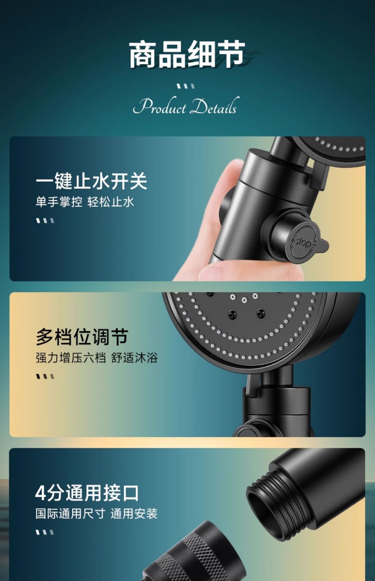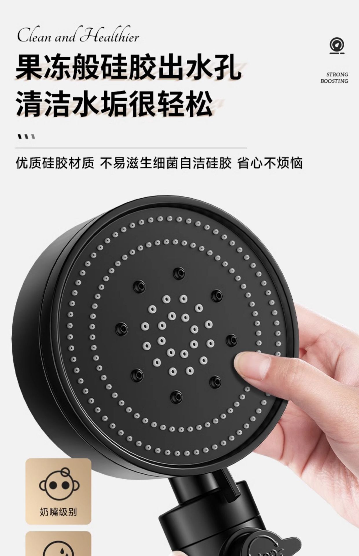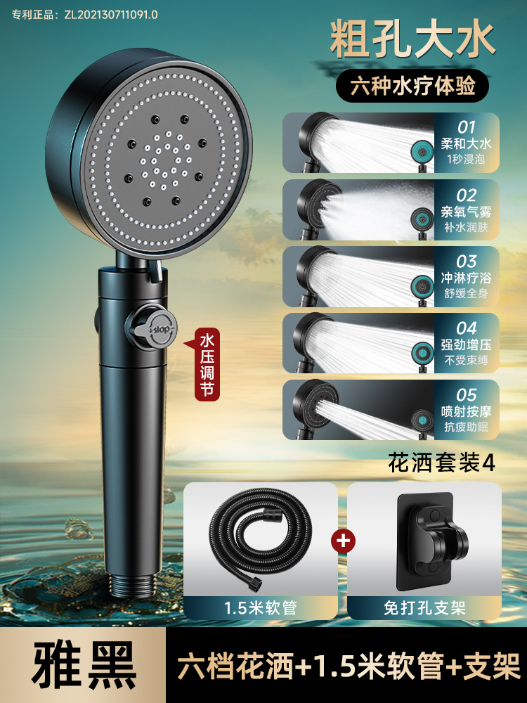 • 블랙 6단 슈퍼차저 샤워헤드(6세대)●업그레이드 및 강화 버전)