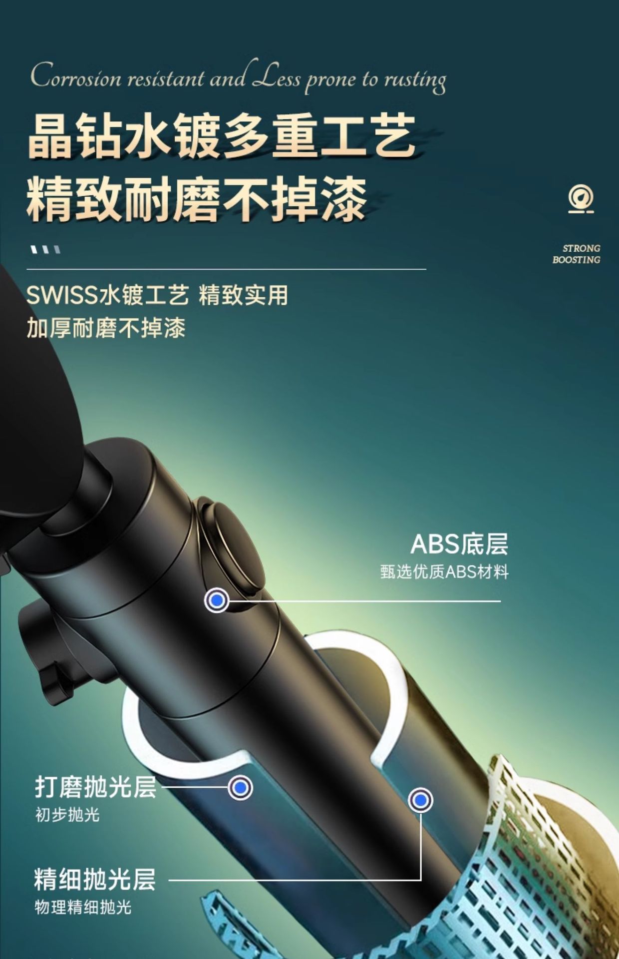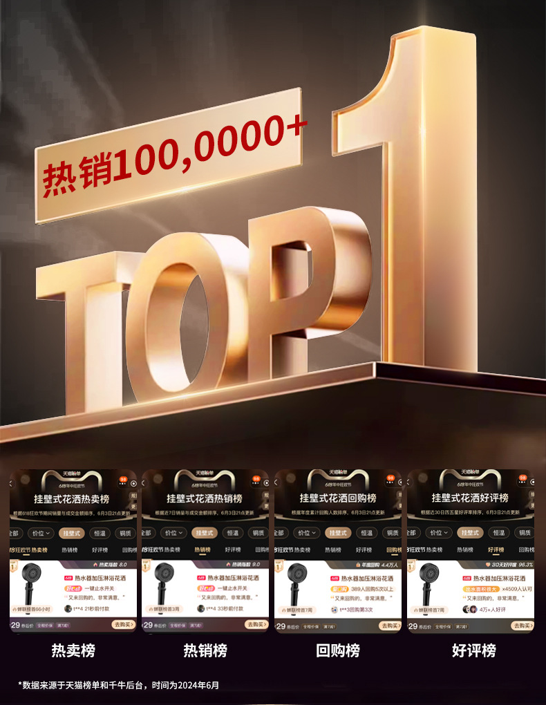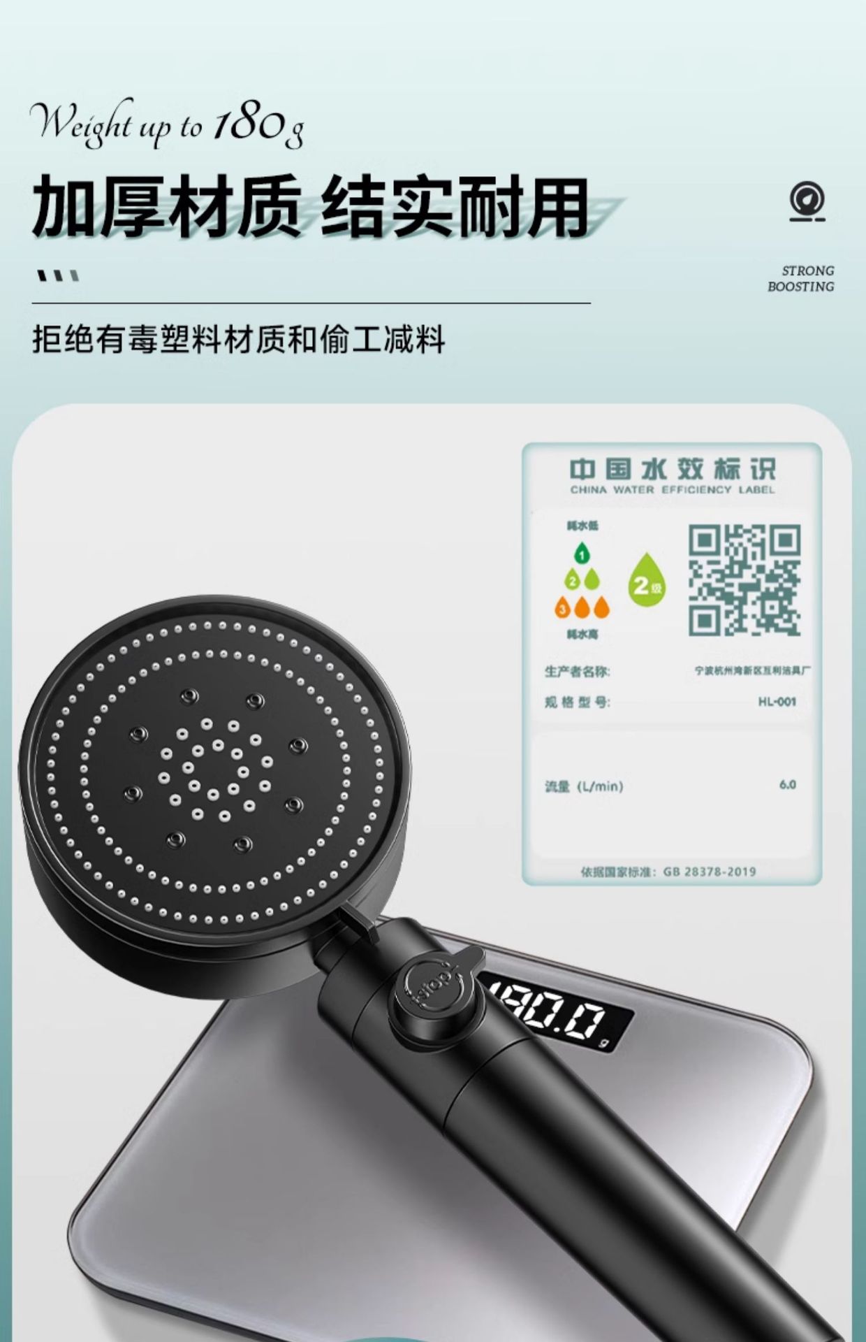 • 블랙 6단 슈퍼차저 샤워헤드(6세대)●업그레이드 및 강화 버전)