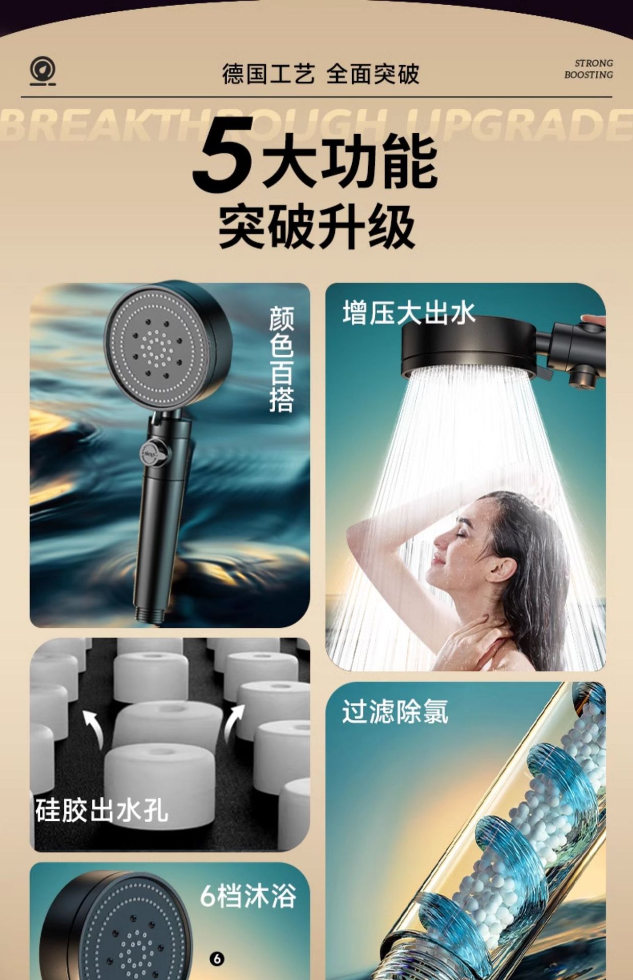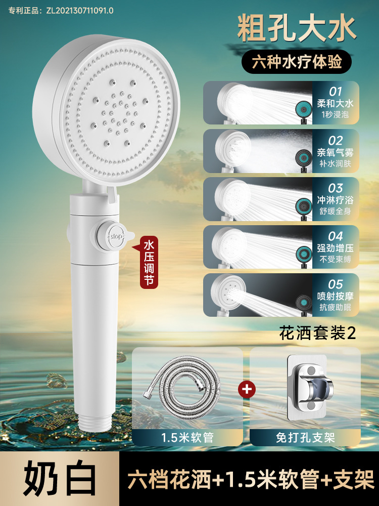 • 화이트 6단 슈퍼차저 샤워헤드(6세대) ● 업그레이드 및 강화 버전)