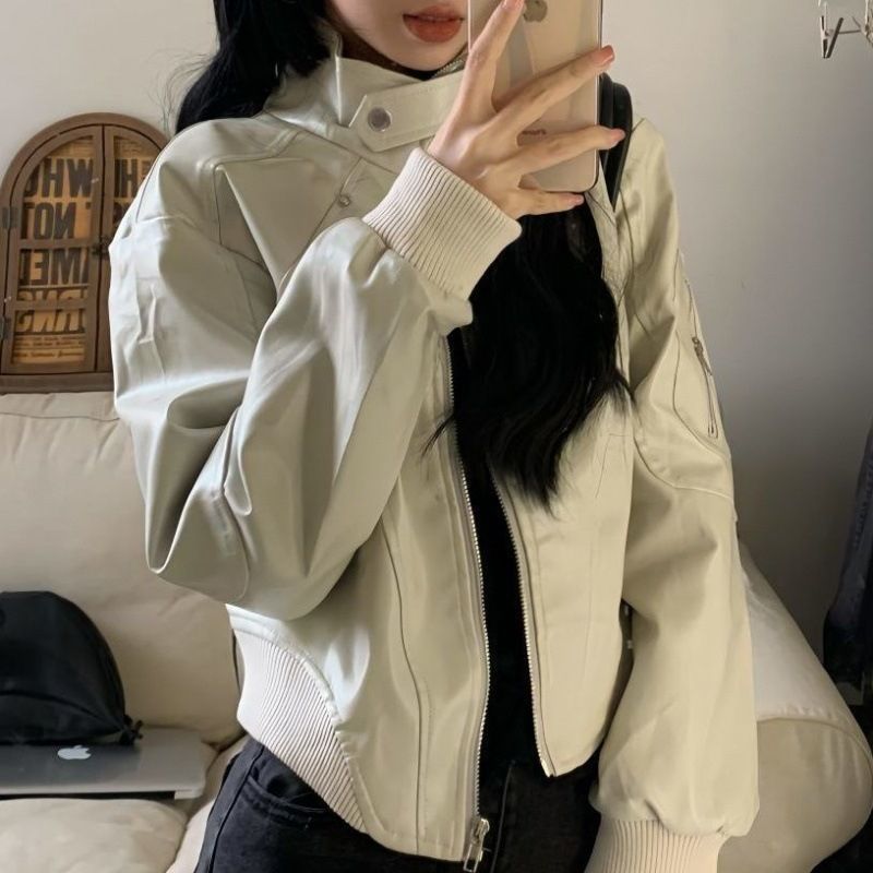 빈티지 가죽 자켓 짧은 코트 여성의 봄과 가을 새로운 느슨한 올 매치 디자인 센스 틈새 핫 소녀 오토바이 재킷스토어 가기