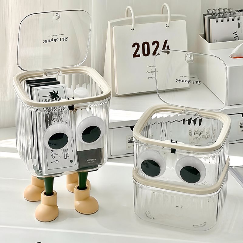 뚜껑 스몰 사이즈 휴지통이있는 고가의 데스크탑 스토리지 박스 책상 문구 박스 오피스 스토리지 랙
