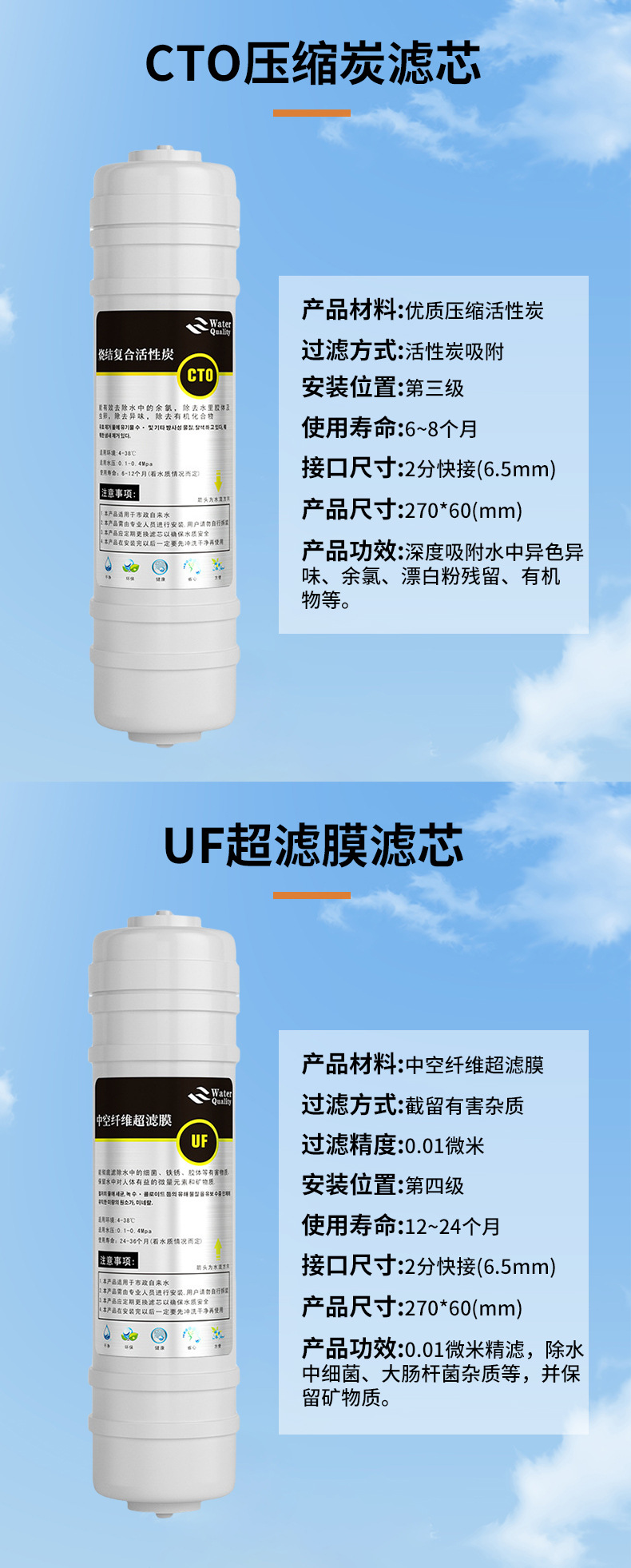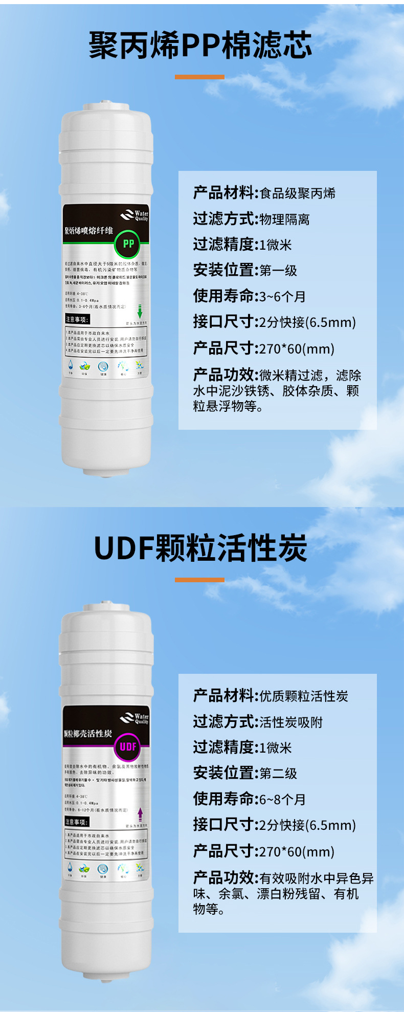 한국의 빠른 연결 필터 요소 초여과 막 PP/UDF/CTO/UF/T33 5 단계 초여과 세트 정수기 필터 요소스토어 가기
