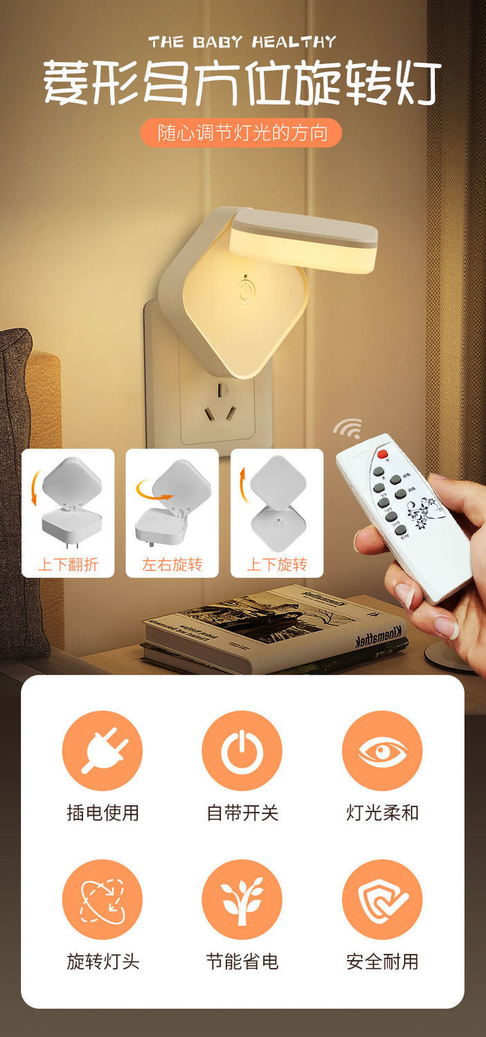 원격 제어 야간 조명 모유 수유 플러그인 소켓 스위치 슈퍼 밝은 침대 옆 아기 먹이 눈 보호 침실 수면 책상 램프스토어 가기
