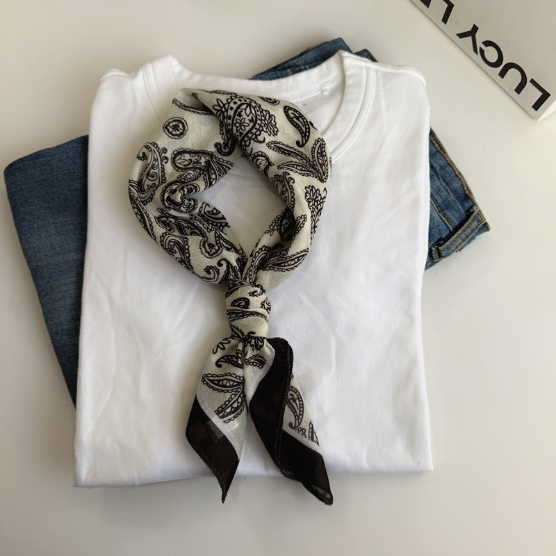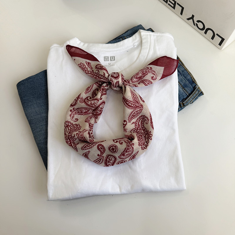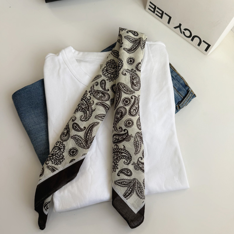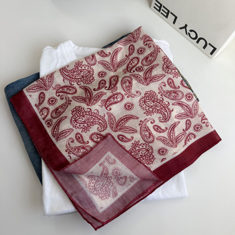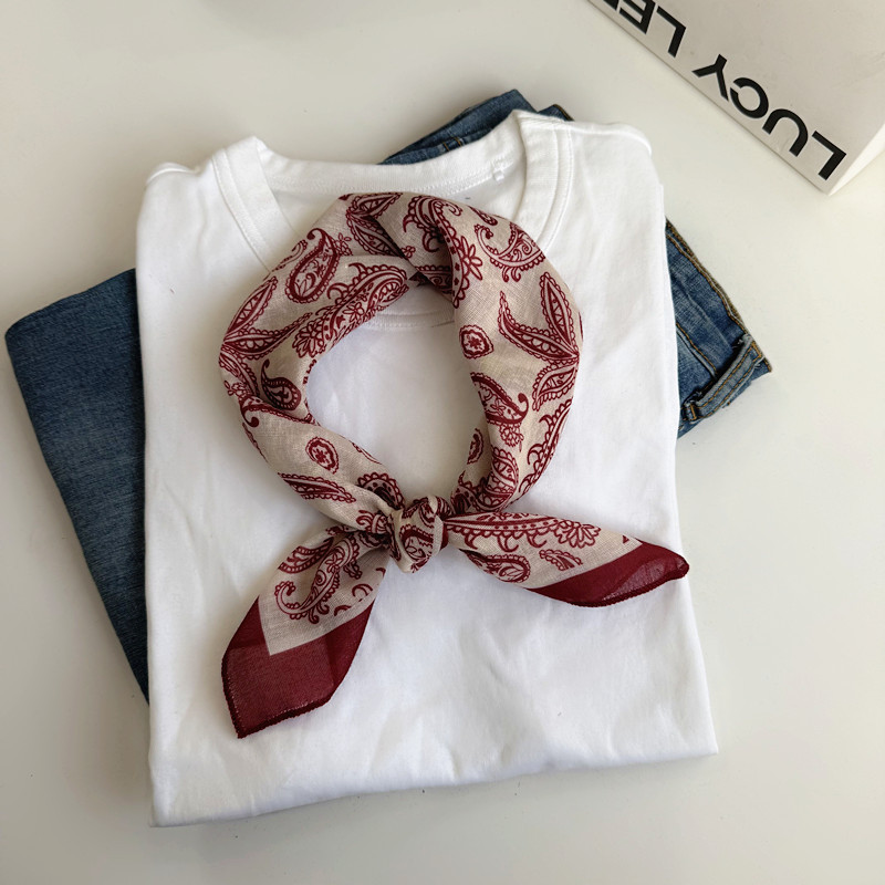 2025春新款复古腰果花文艺小方巾领巾男女护颈丝巾系脖薄围巾头巾