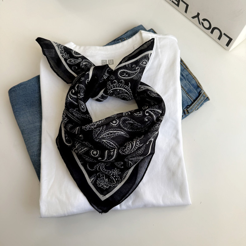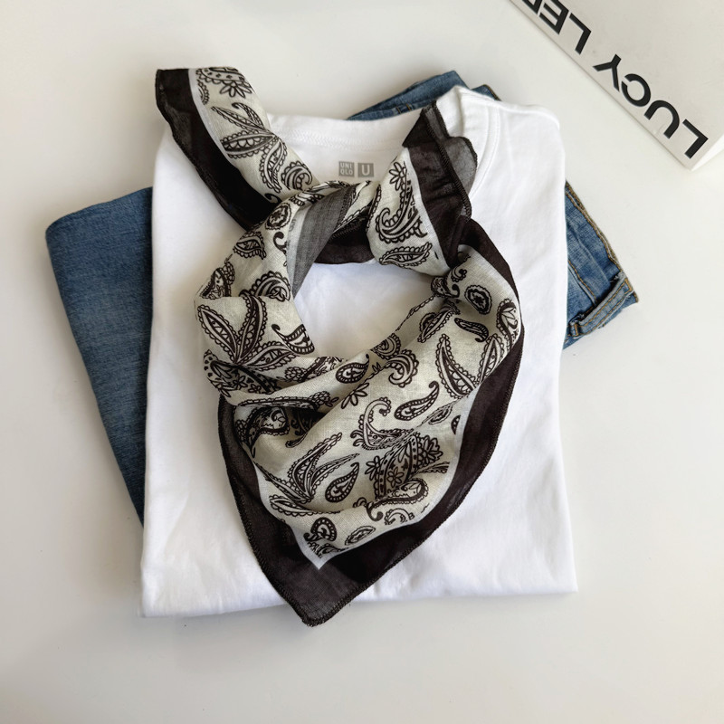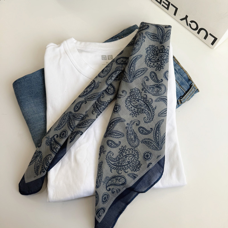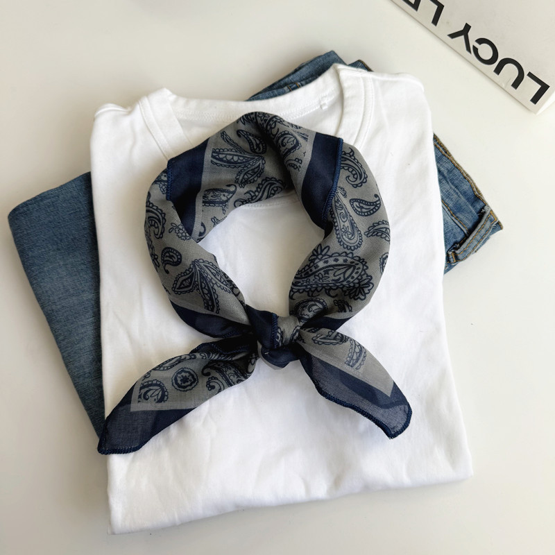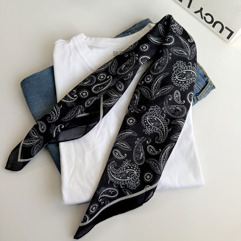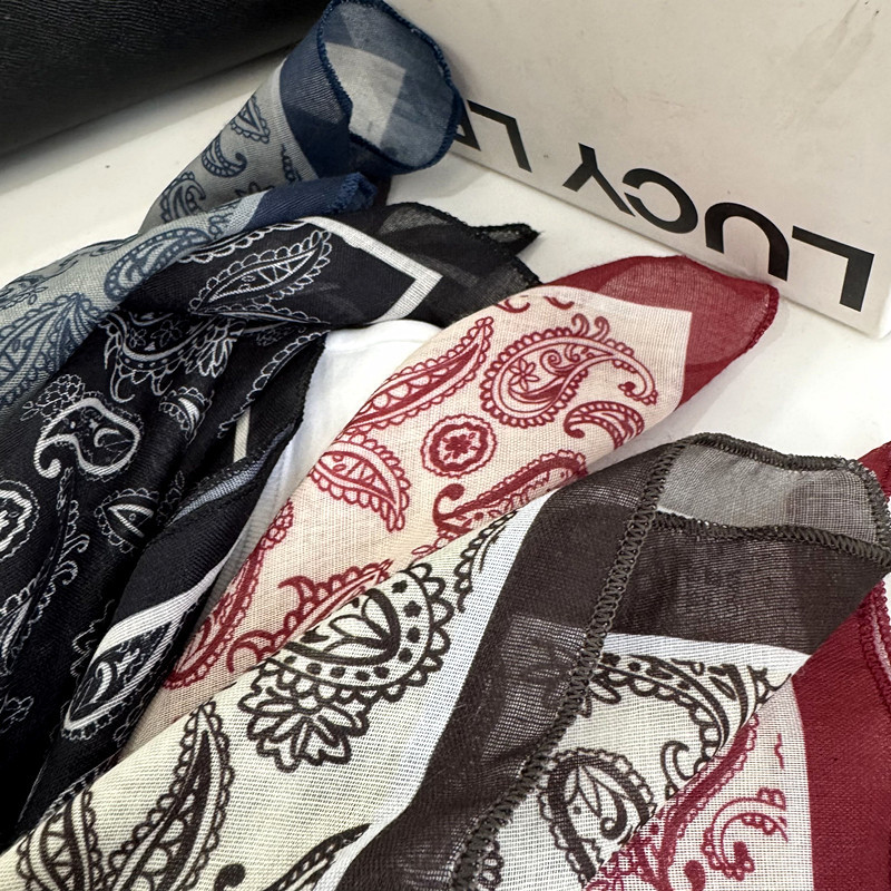 2025春新款复古腰果花文艺小方巾领巾男女护颈丝巾系脖薄围巾头巾