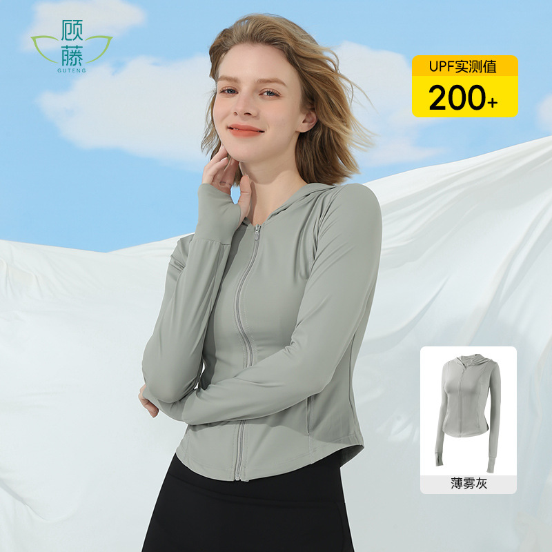 Gu Teng 슈퍼 모델 선 스크린 의류 여성 아이스 실크 시원한 느낌 빠른 건조 허리 슬림 운동 요가 슬리밍 코트 자외선 차단제 의류스토어 가기