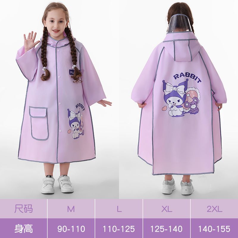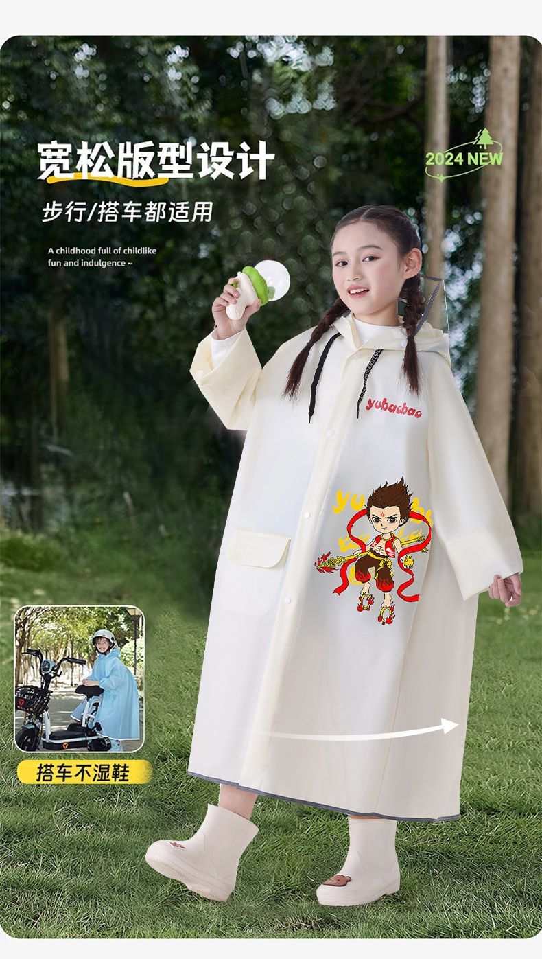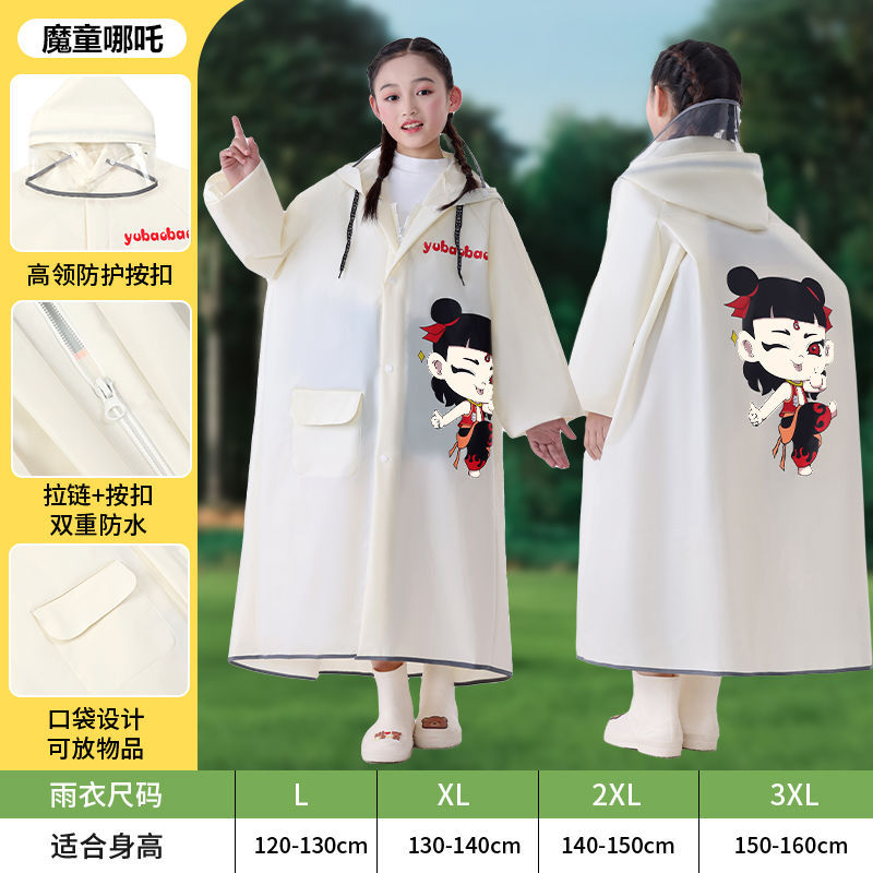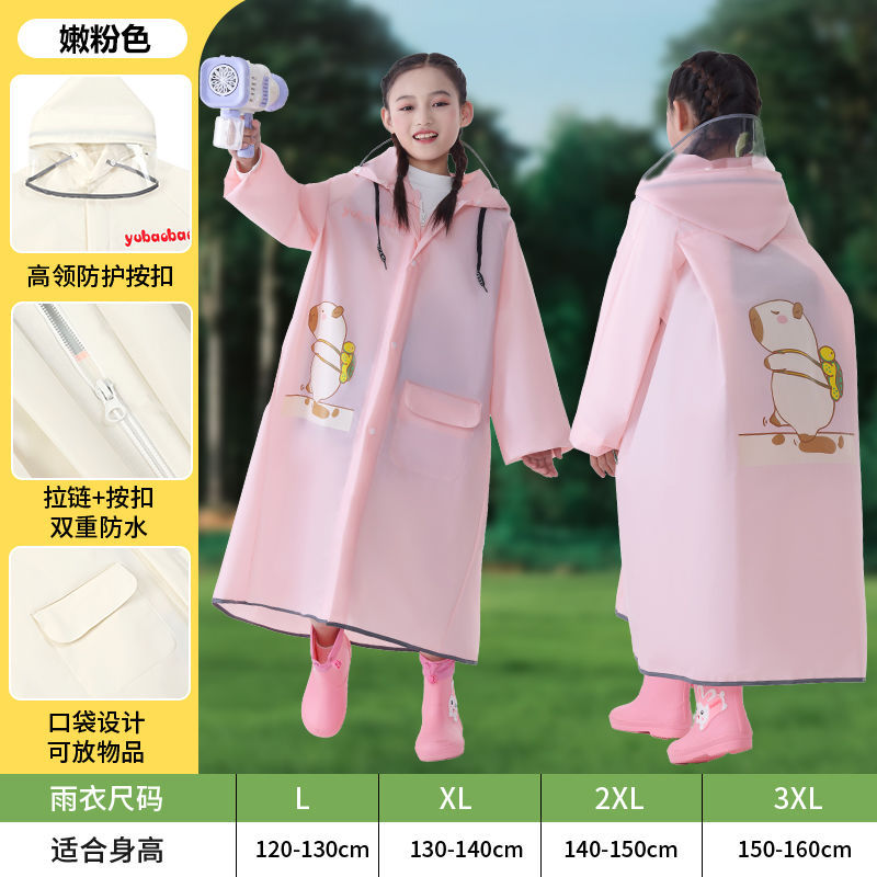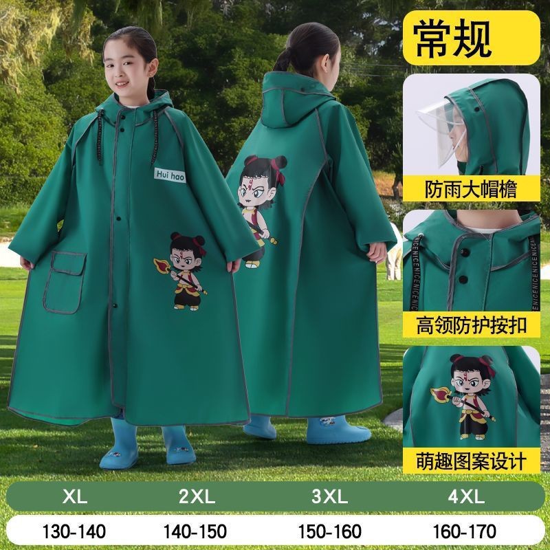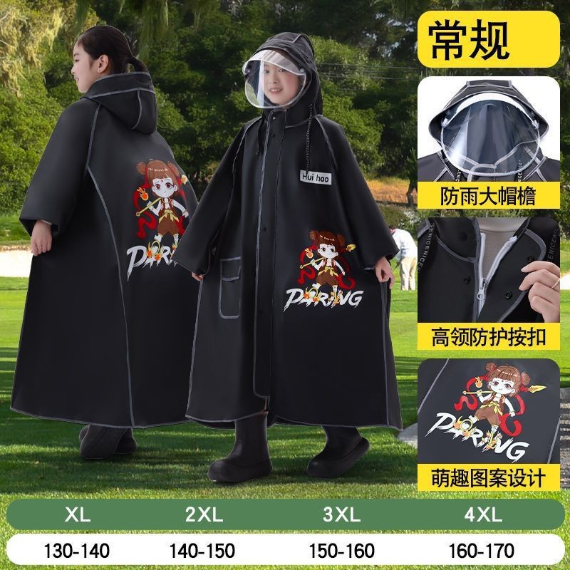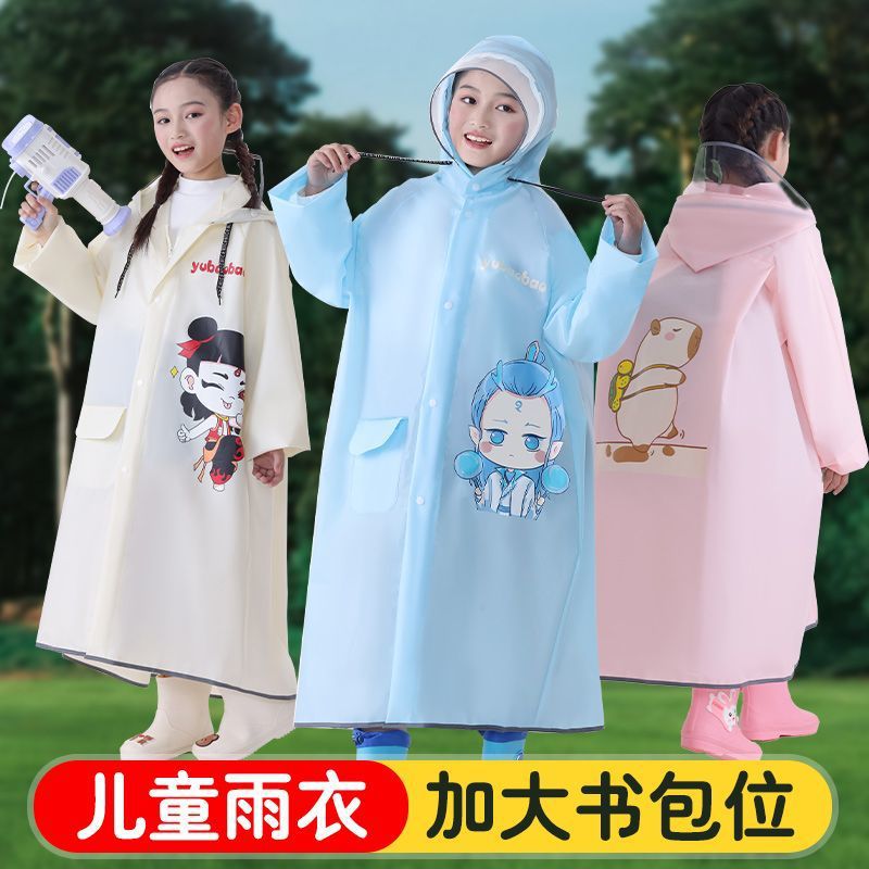 어린이용 레자 우비, 학생용(6-12세), 특수 EVA 일체형 방수 망토, 가방 수납공간 포함 야외용