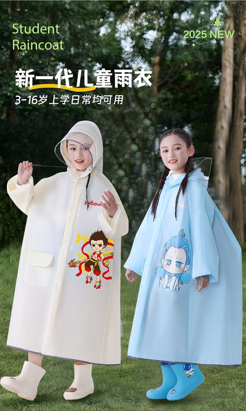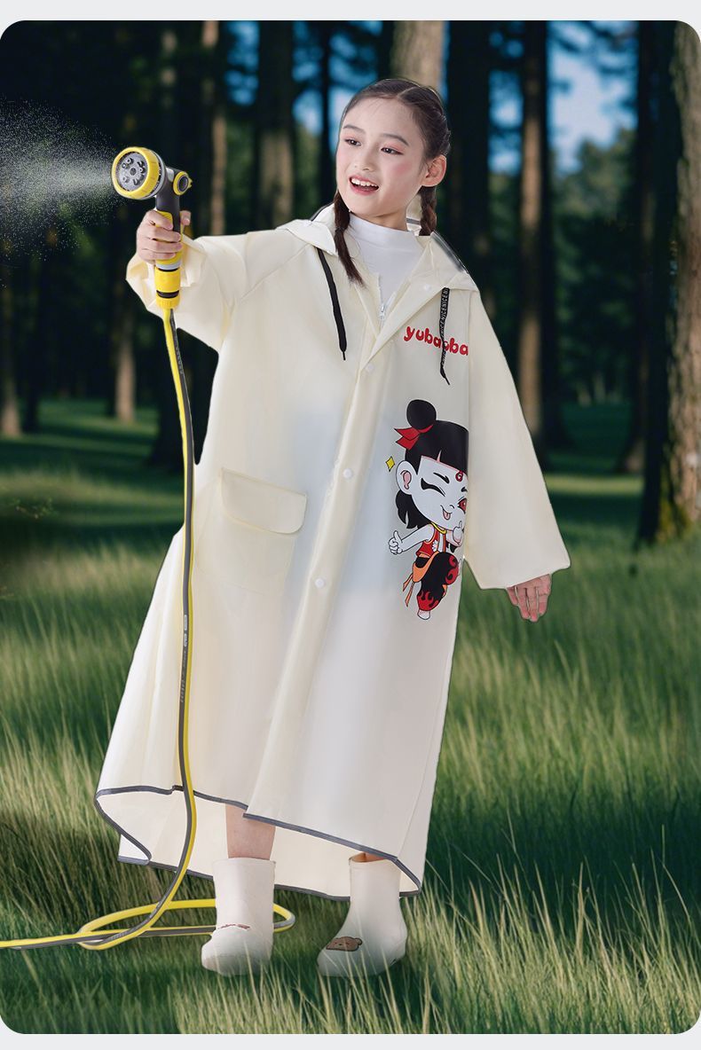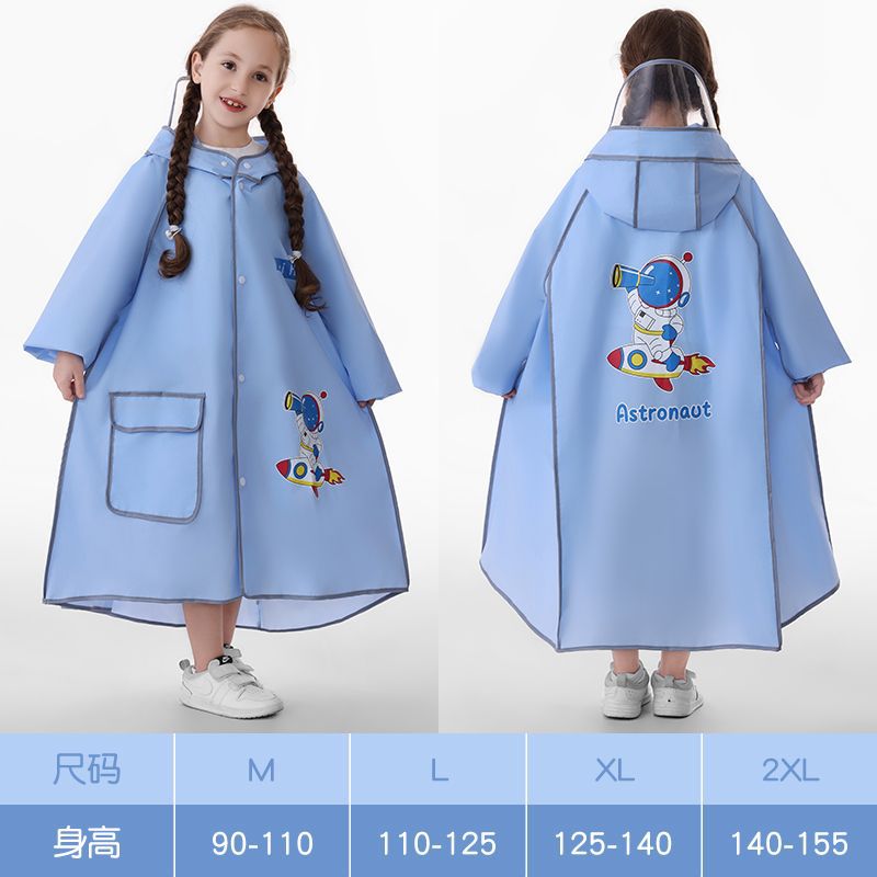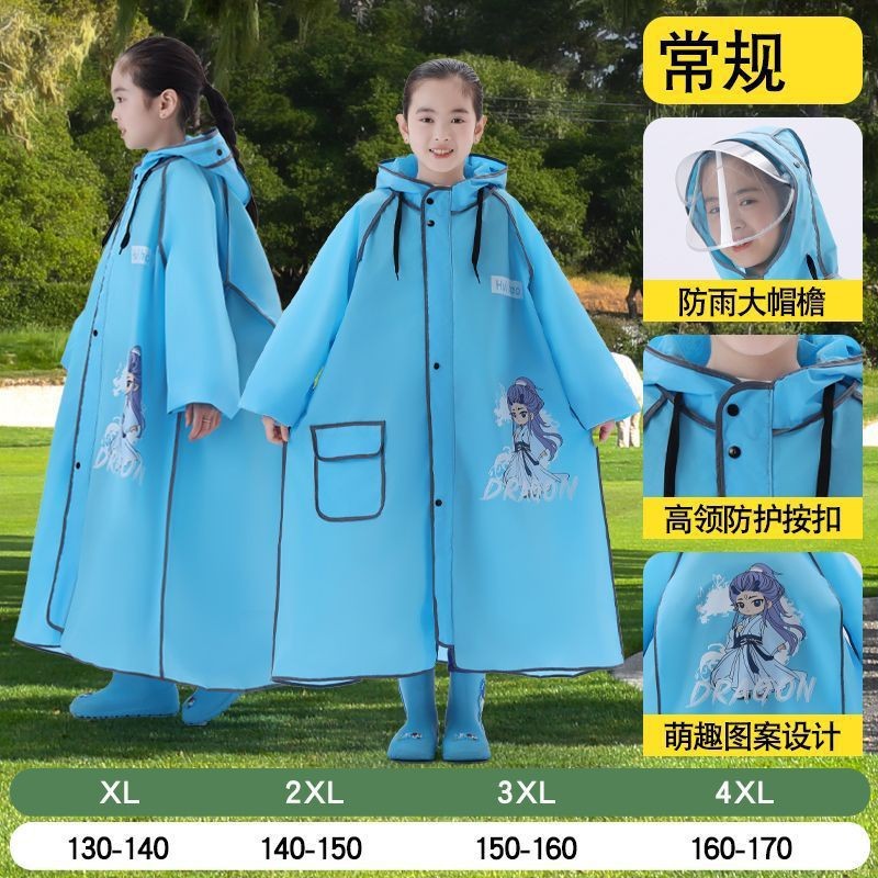 어린이용 레자 우비, 학생용(6-12세), 특수 EVA 일체형 방수 망토, 가방 수납공간 포함 야외용스토어 가기