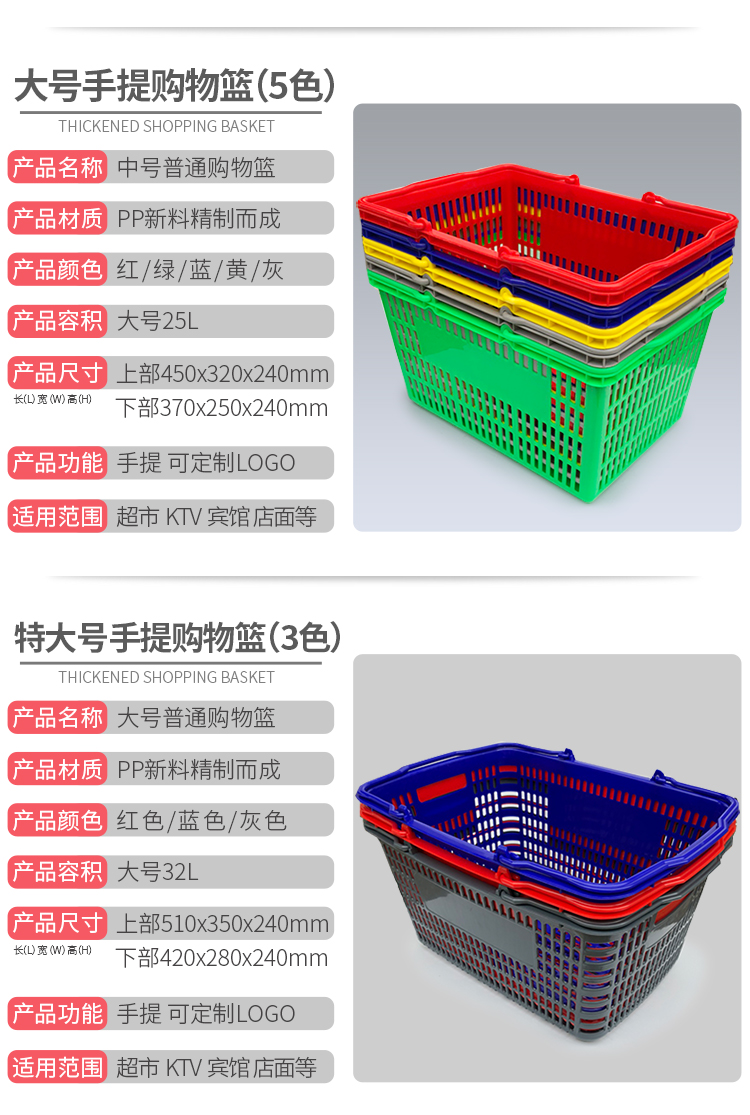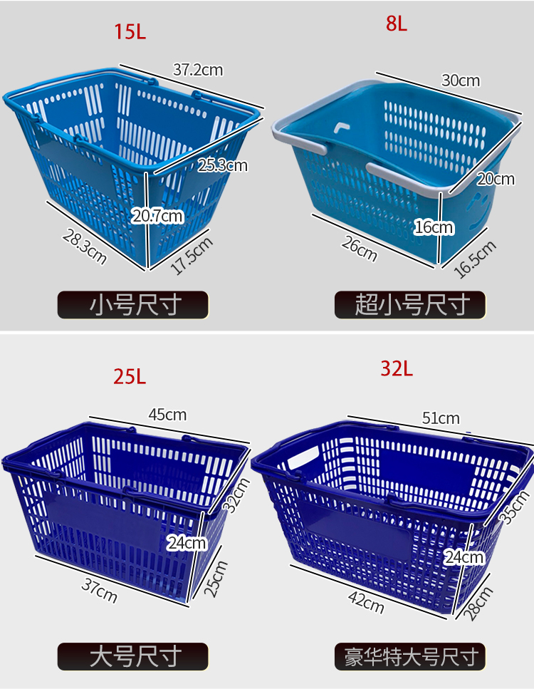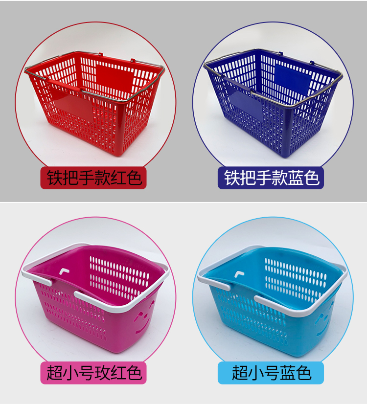 슈퍼마켓 쇼핑 바구니 두꺼운 플라스틱 휴대용 바구니 쇼핑 바구니 편의점 대형 스몰 사이즈 쇼핑 바구니 넥타이 장샤오위