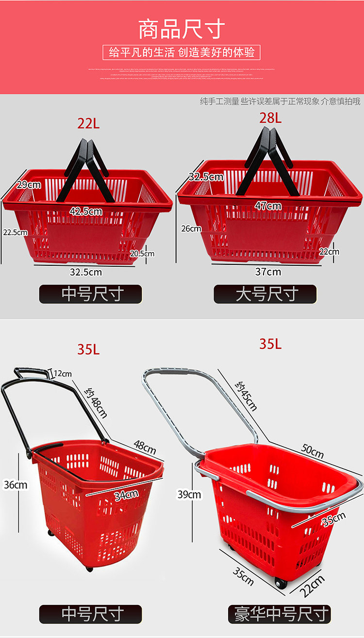 슈퍼마켓 쇼핑 바구니 두꺼운 플라스틱 휴대용 바구니 쇼핑 바구니 편의점 대형 스몰 사이즈 쇼핑 바구니 넥타이 장샤오위스토어 가기