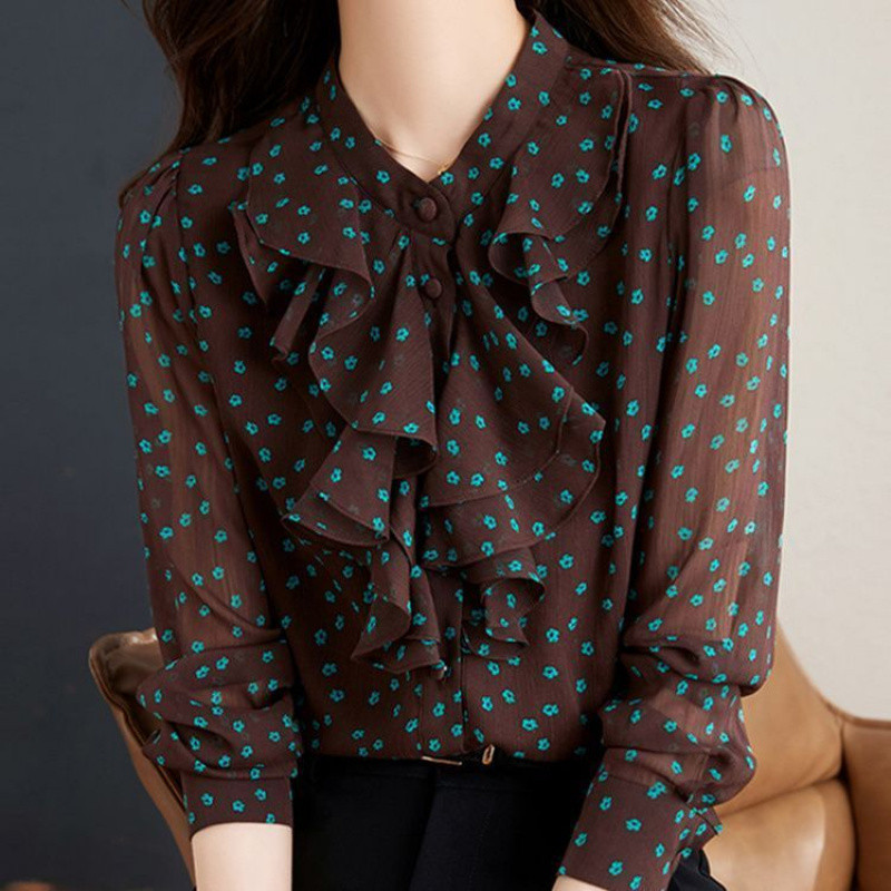 러플 웨이브 도트 긴 소매 쉬폰 셔츠 여성의 가을 2025 새로운 프랑스 스타일 세련된 아름다운 작은 셔츠 우아한 탑