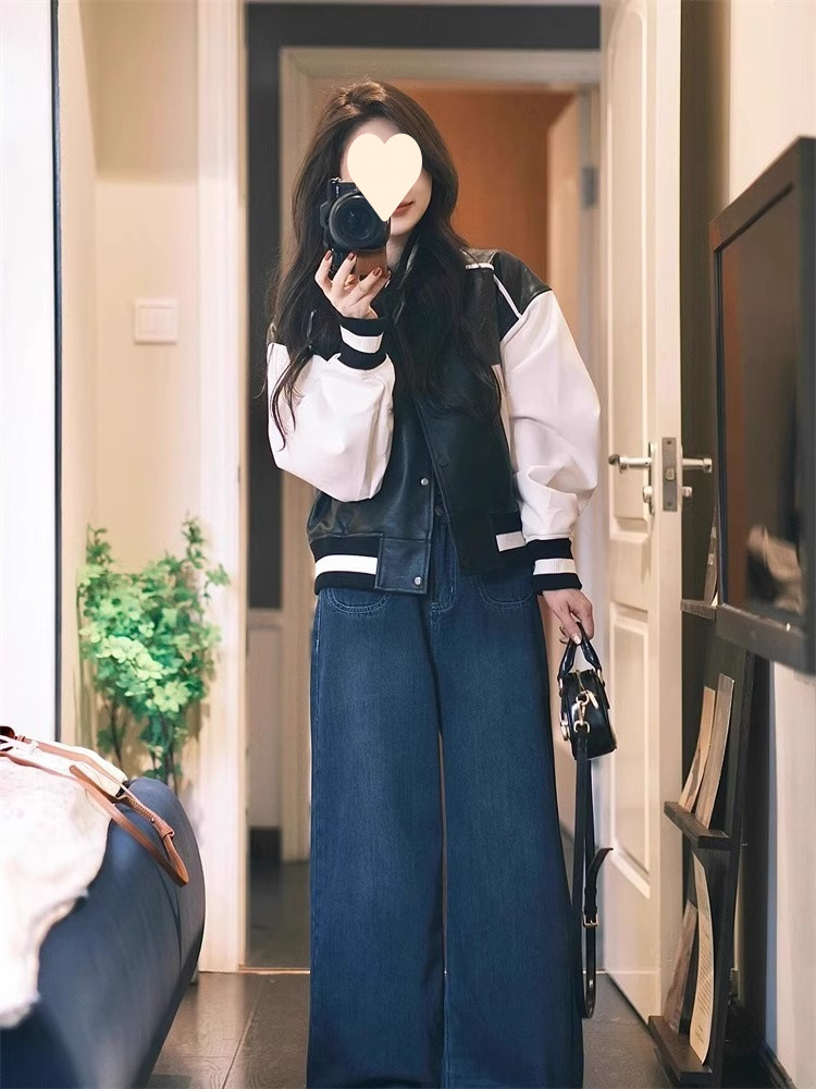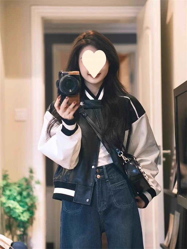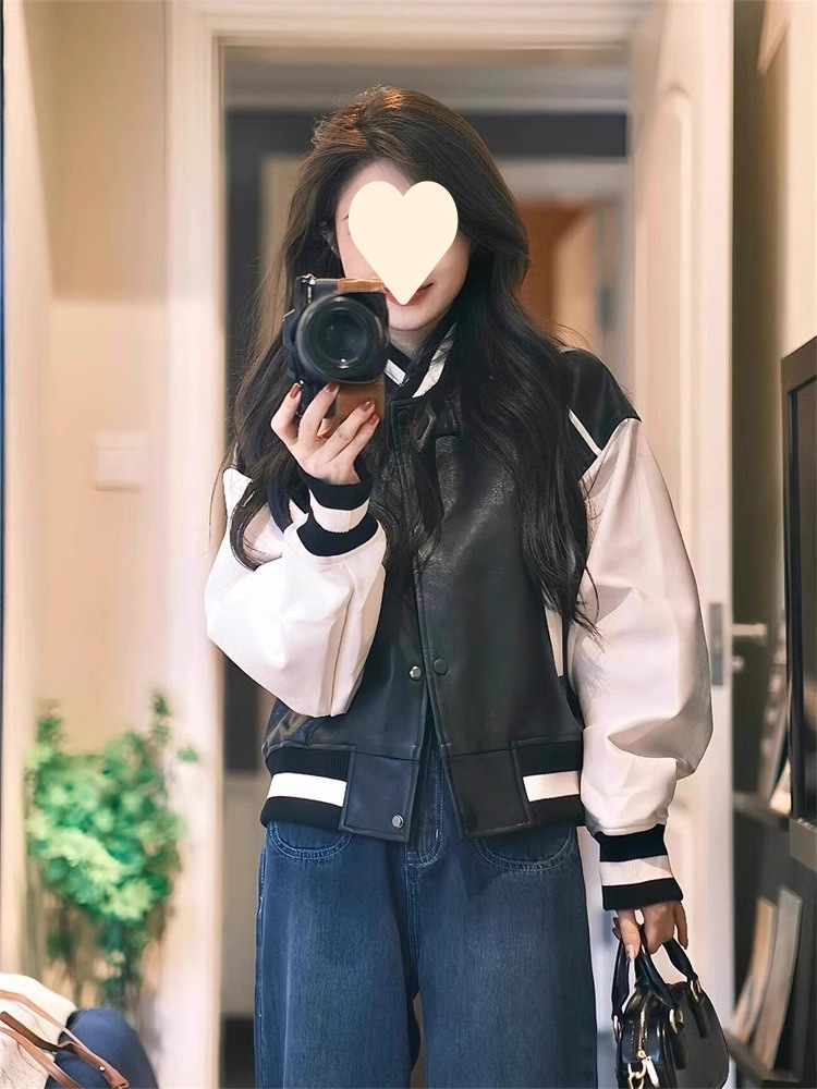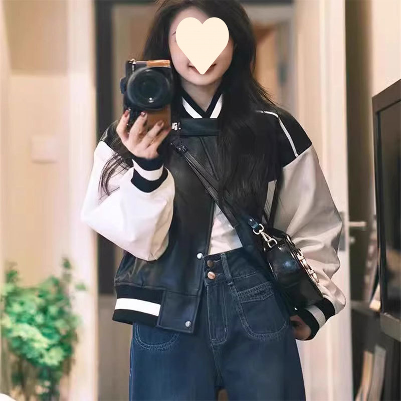 2024 가을과 겨울 새로운 한국 스타일 PU 가죽 자켓 야구 옷 두꺼운 재킷 여자 올 매치 캐주얼 자켓스토어 가기