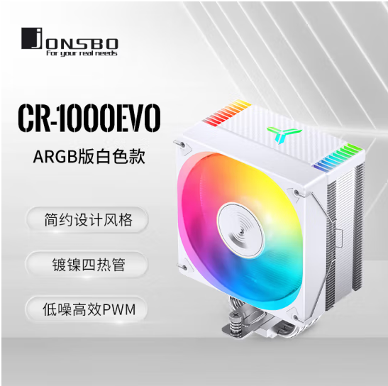乔思伯(JONSBO)CR-1000EVO ARGB版 CPU风冷散热器(镀镍4热管/主板幻彩ARGB同步/PWM风扇/多平台/附硅脂)