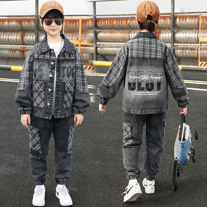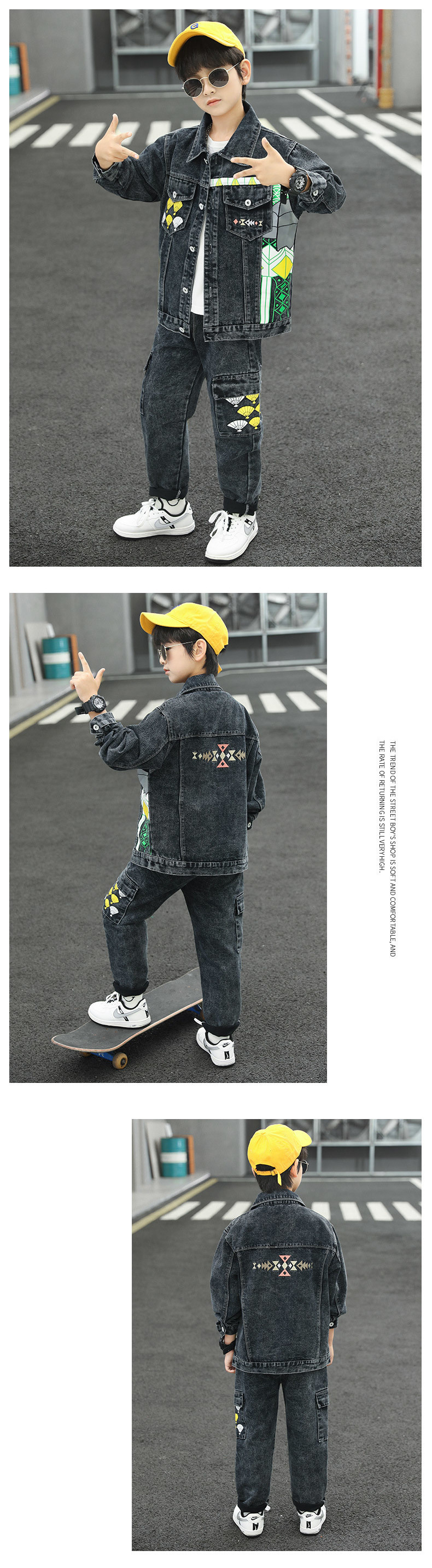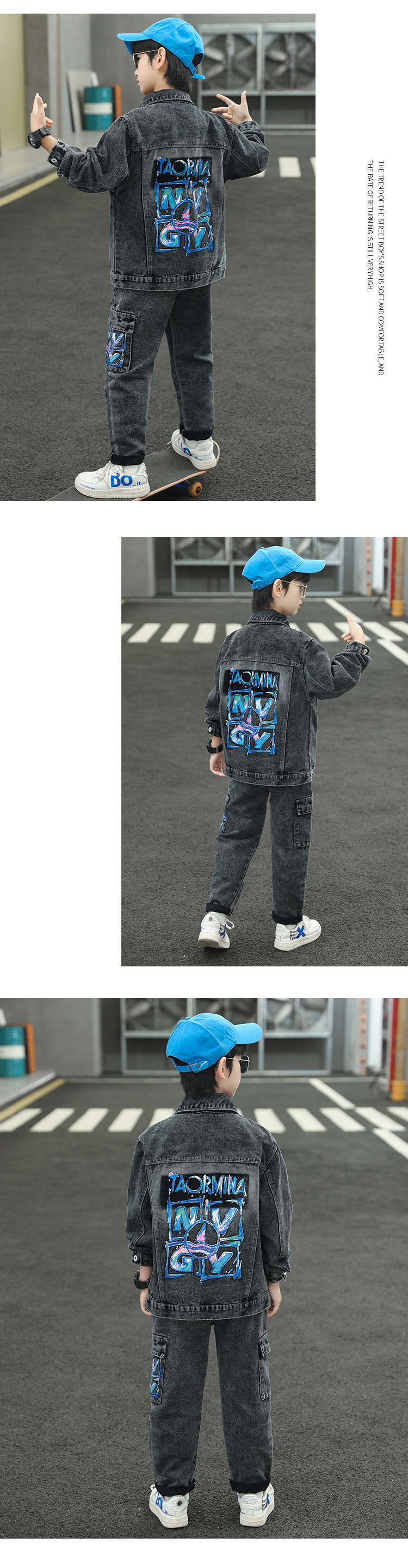 소년 가을 데님 세트 2025 새로운 8-10 세 잘 생긴 아이들 봄과 가을 ruffian 잘 생긴 조수 소년 시원한스토어 가기