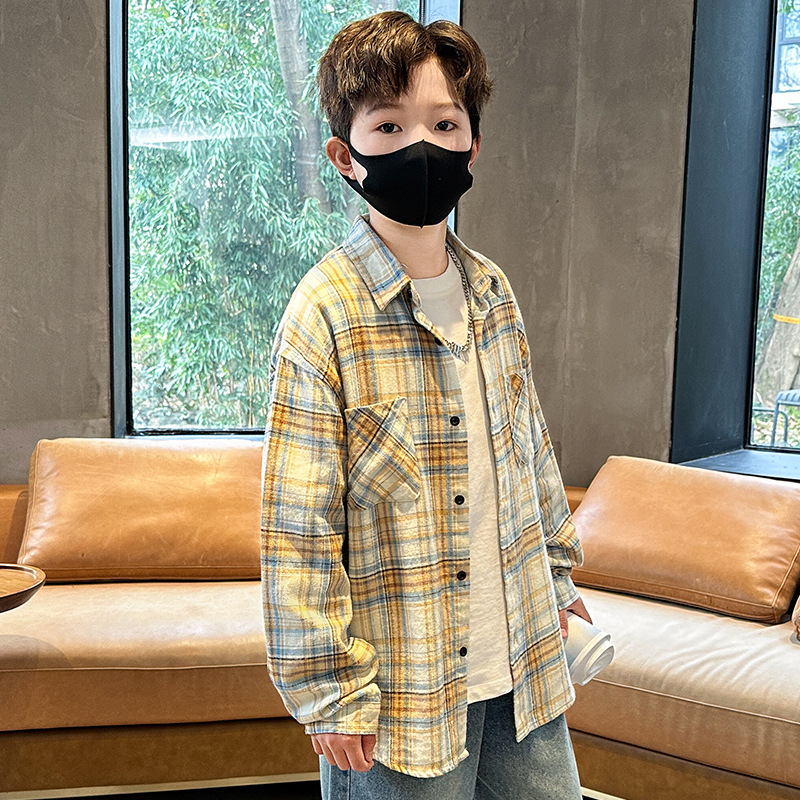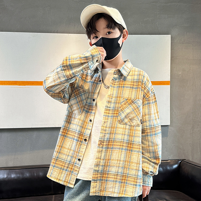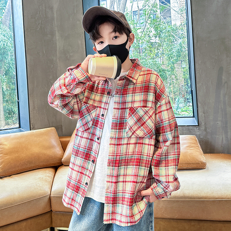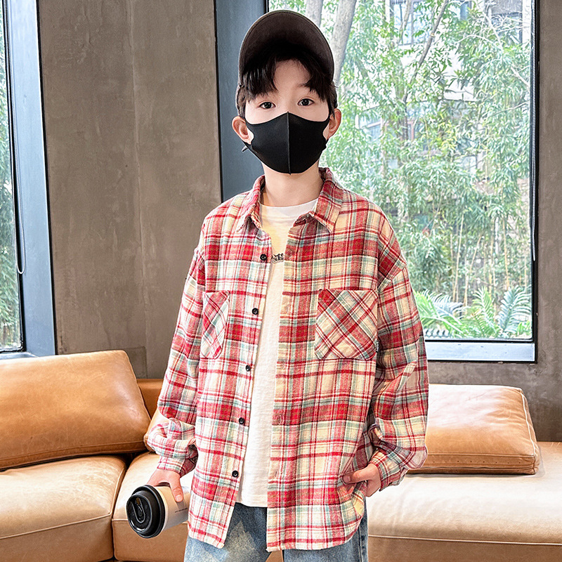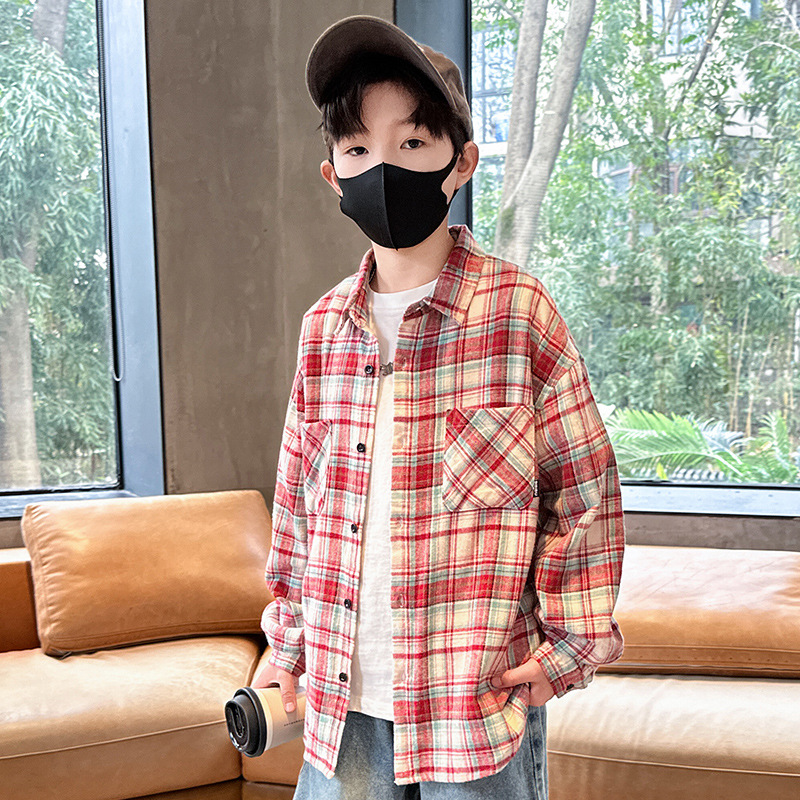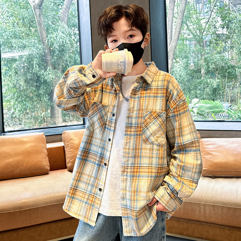 봄 소년 셔츠 중형 및 대형 어린이 의류 어린이 소년 봄과 가을 긴 소매 체크 무늬 셔츠 재킷 캐주얼 자켓