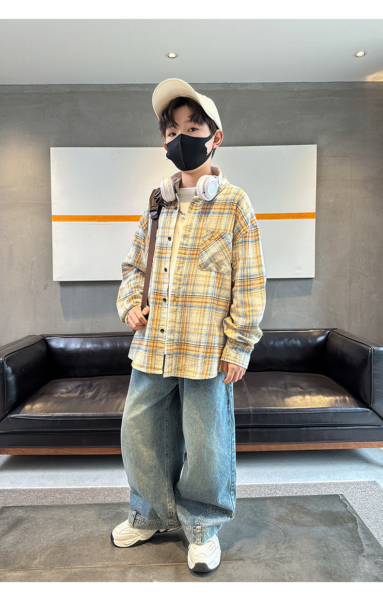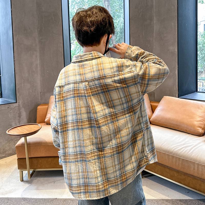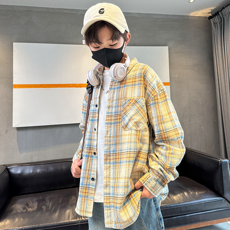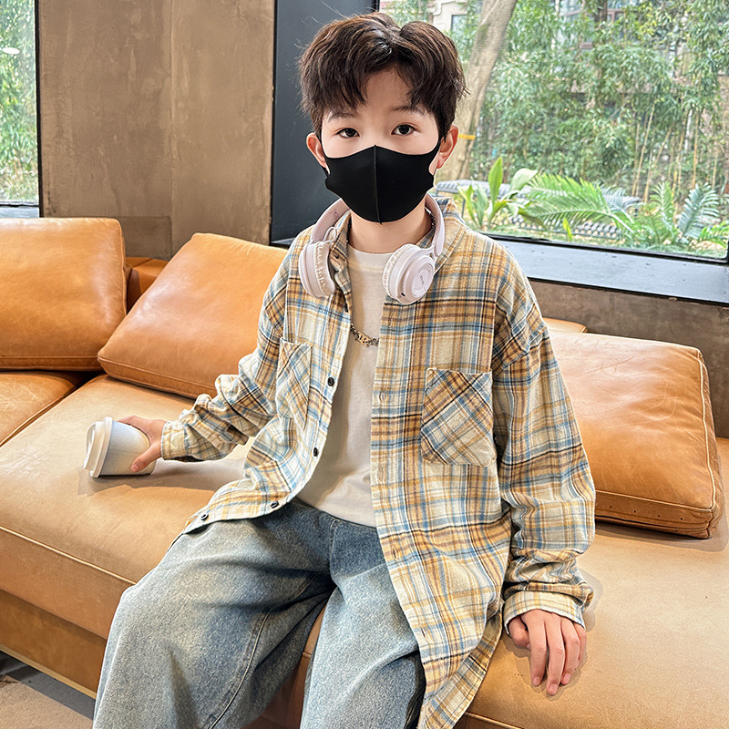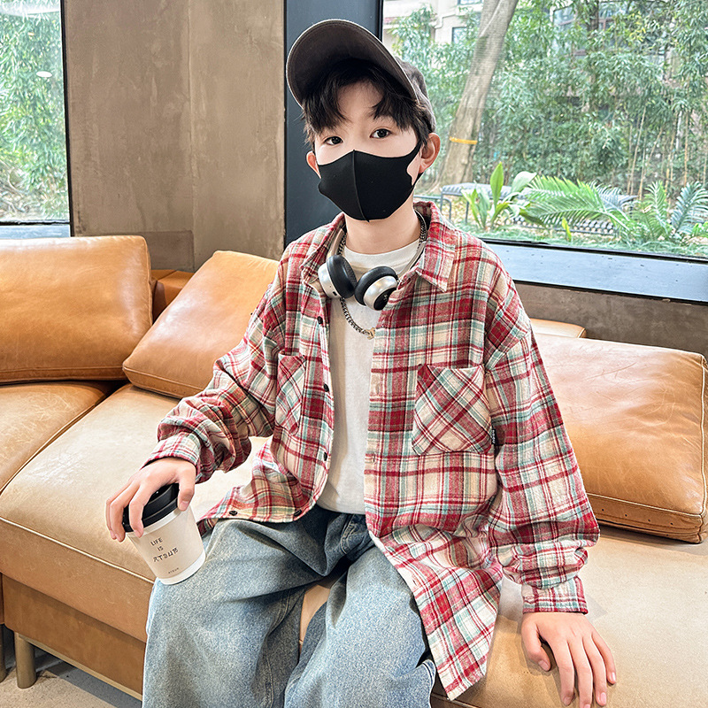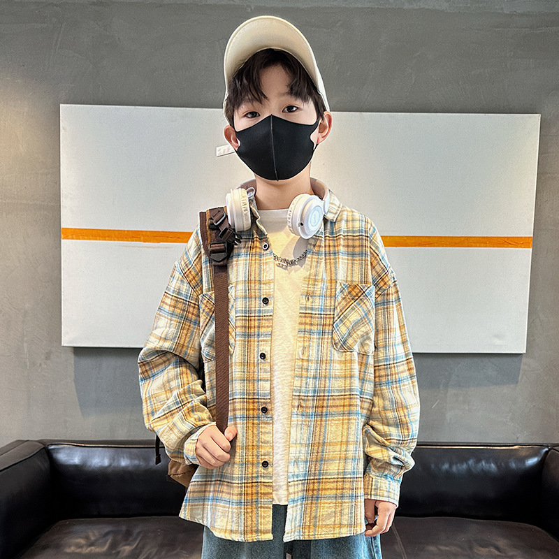 봄 소년 셔츠 중형 및 대형 어린이 의류 어린이 소년 봄과 가을 긴 소매 체크 무늬 셔츠 재킷 캐주얼 자켓