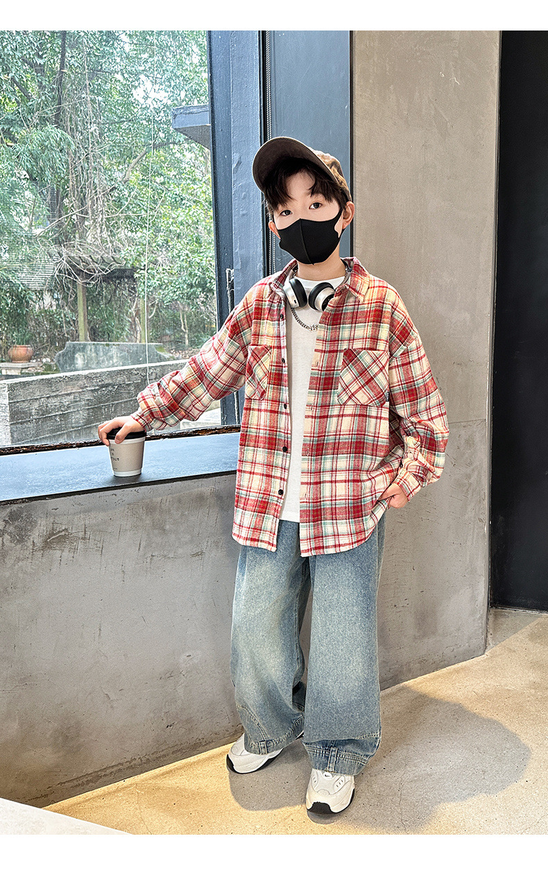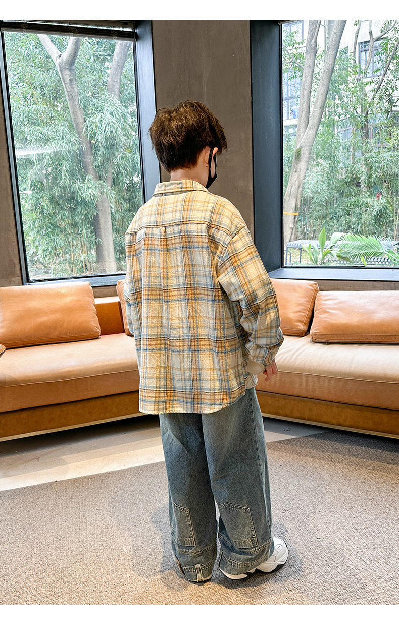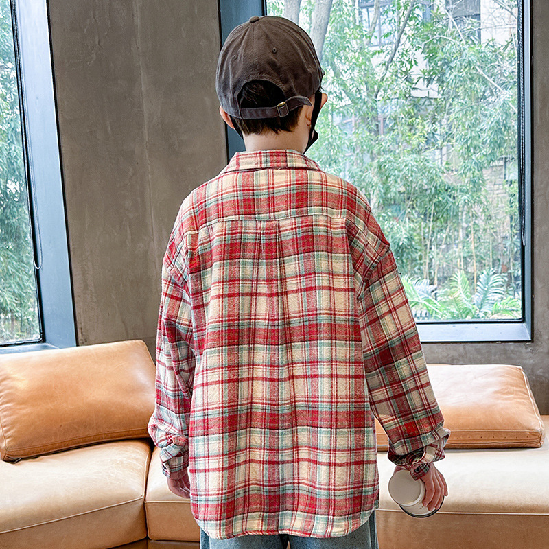 봄 소년 셔츠 중형 및 대형 어린이 의류 어린이 소년 봄과 가을 긴 소매 체크 무늬 셔츠 재킷 캐주얼 자켓스토어 가기