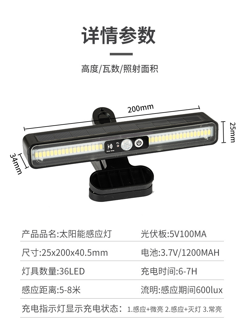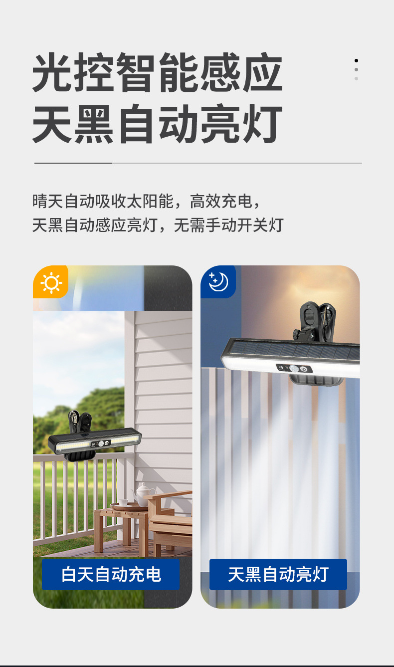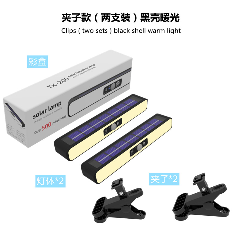 새로운 태양광 패널 클립 라이트, 정원용 방수 야외 조명, 인체 감지 벽등, 설치 불필요