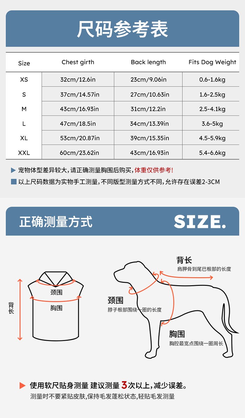 • XXL (가슴둘레 60CM, 등기장 43CM) 권장 5.4-6.6KG