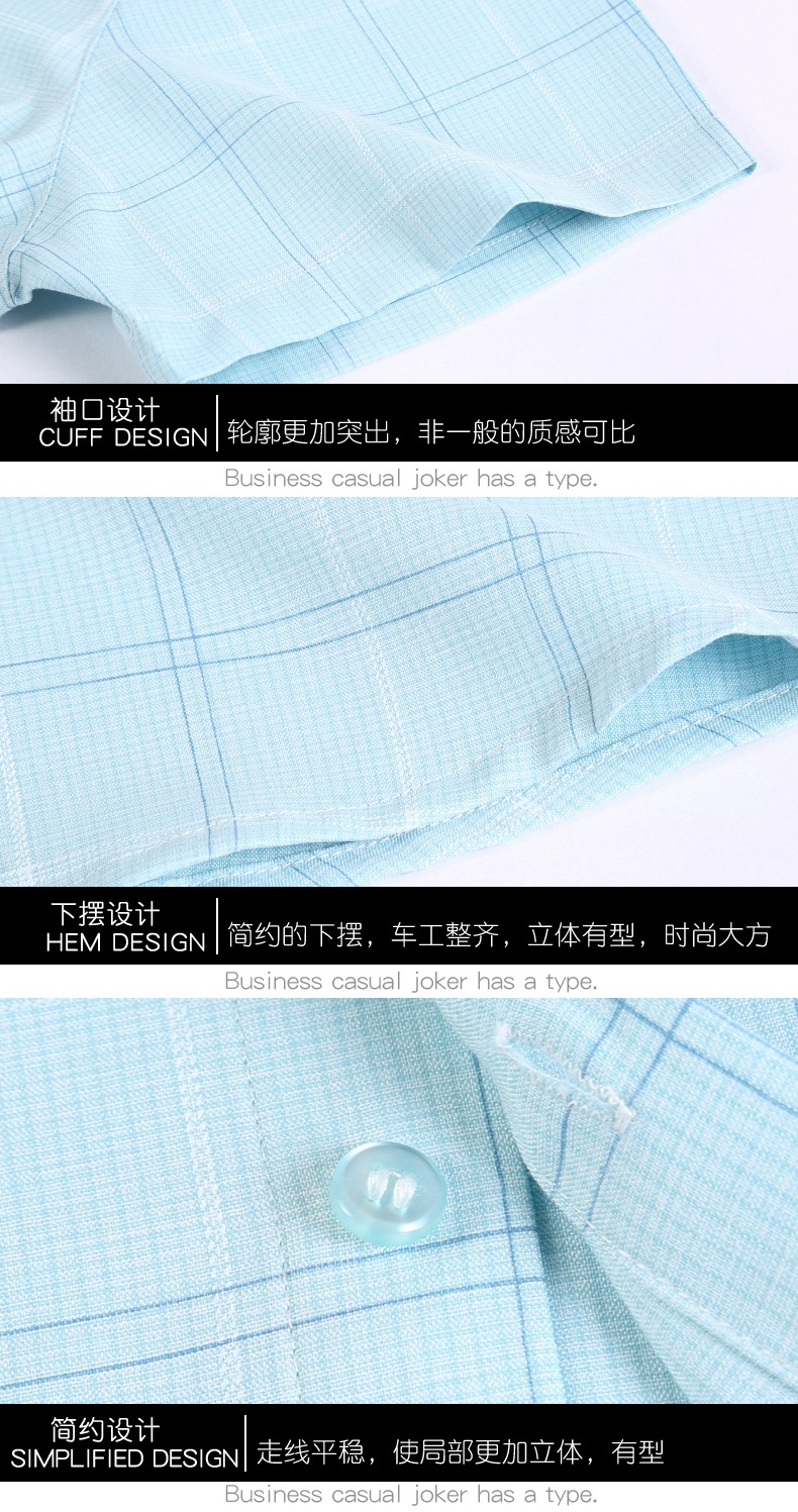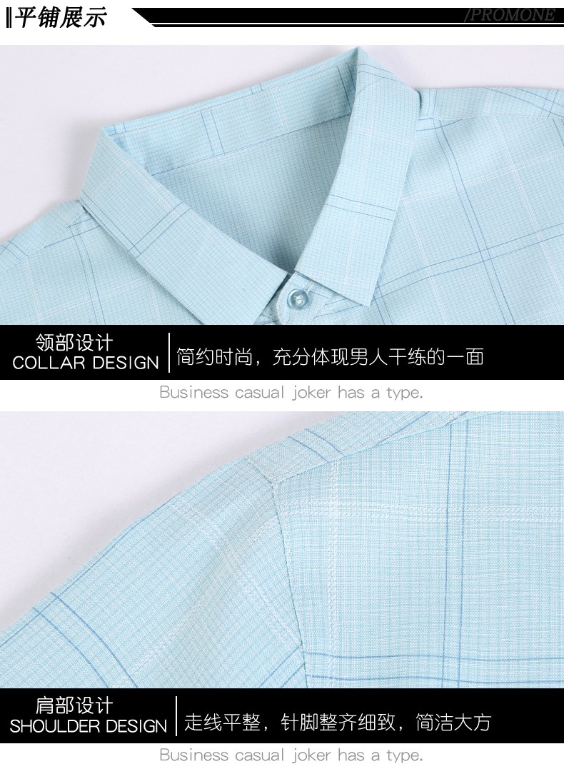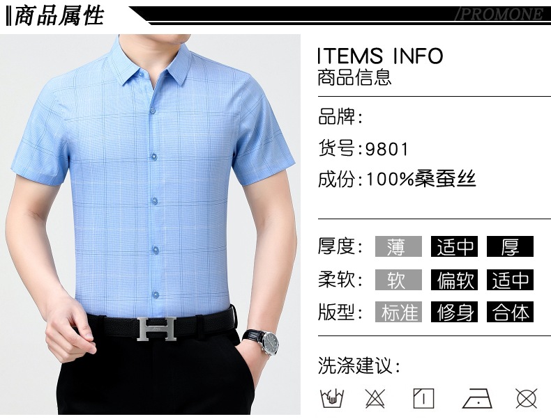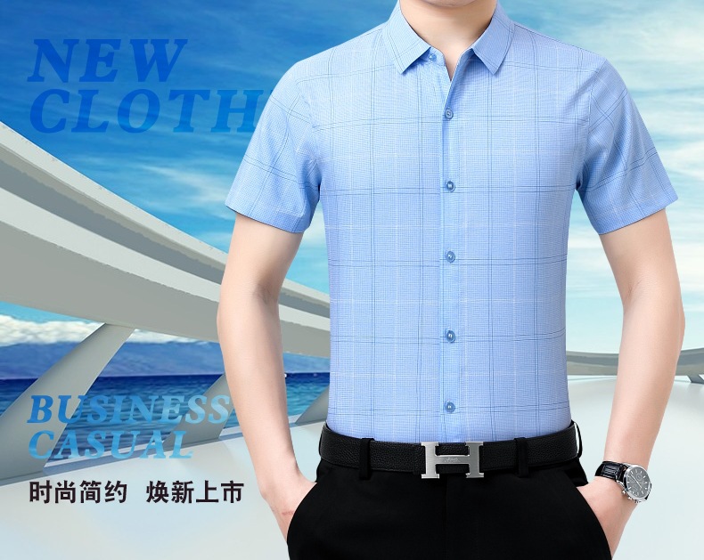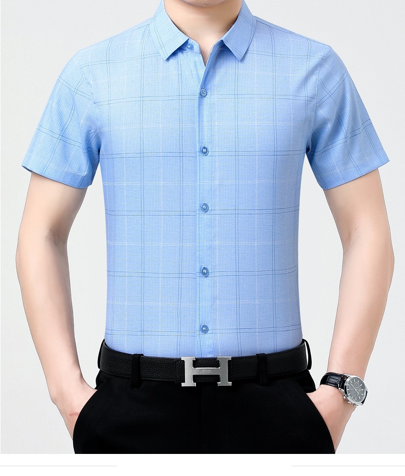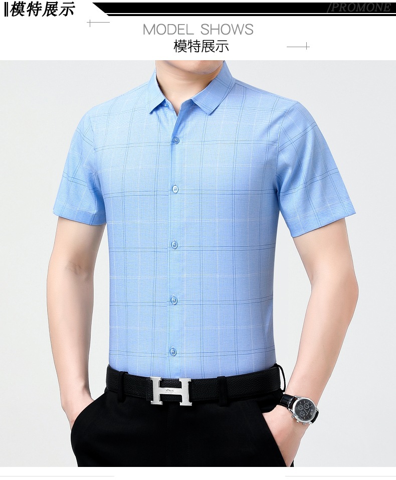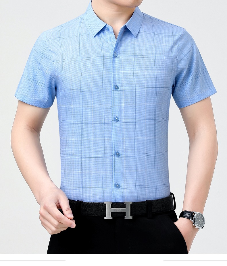 공장 직접 고급 중년 아빠 실크 남성용 체크 무늬 셔츠 사업 비 다림질 주름 셔츠 반소매스토어 가기