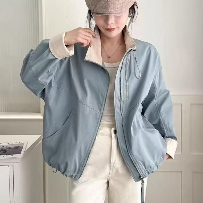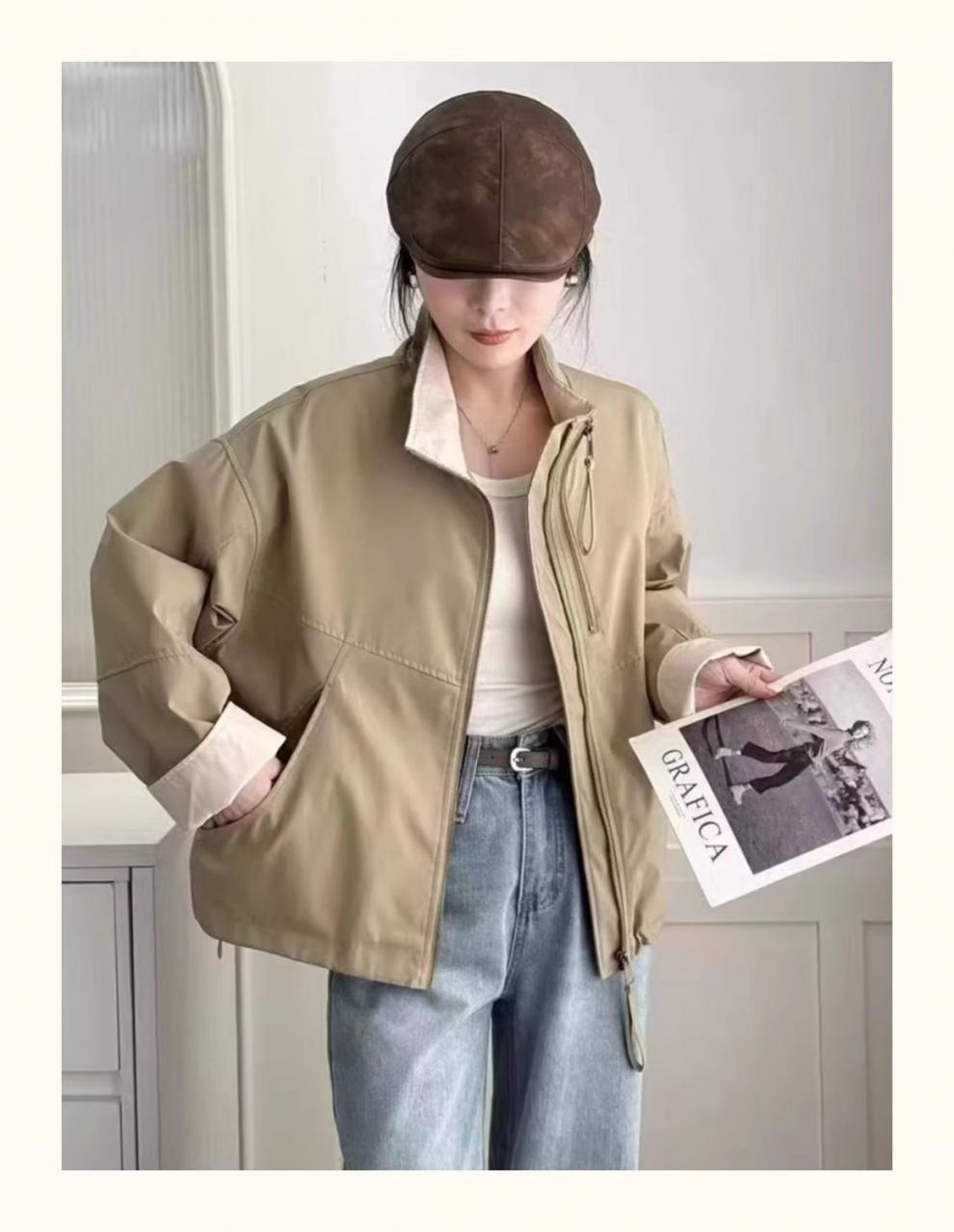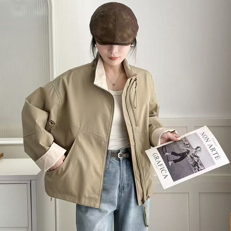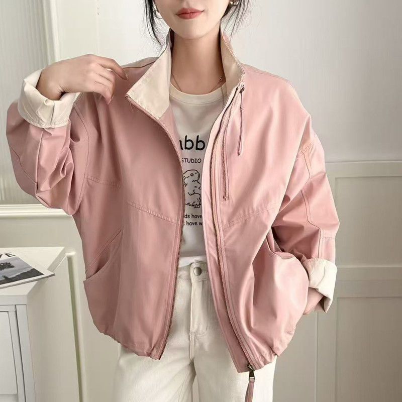 쇼트 재킷 코트 여자 2025 가을 새로운 수직 칼라 야구 세트 캐주얼 올 매치 작은 재킷 탑