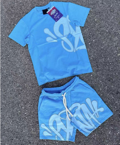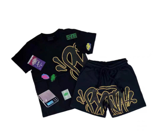 유럽과 미국식 스트리트 힙합 남녀 편지 인쇄 느슨한 반팔 최고 남성 여름 패션 브랜드 캐주얼 스포츠 세트