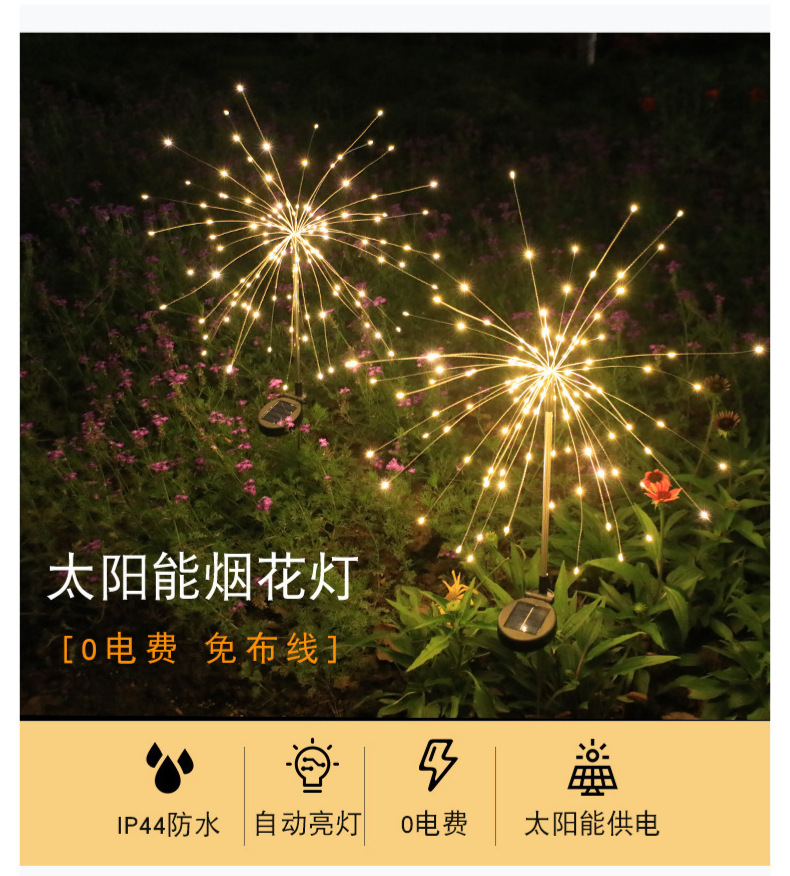 국경 LED 구리 와이어 태양 빛 끈 야외 방수 불꽃 놀이 램프 바닥 잔디 램프 정원 장식 분위기 램프