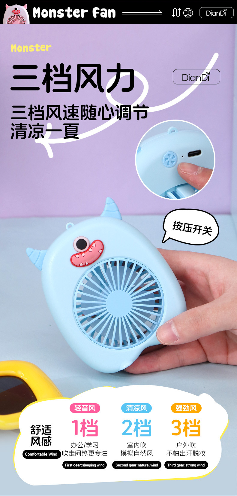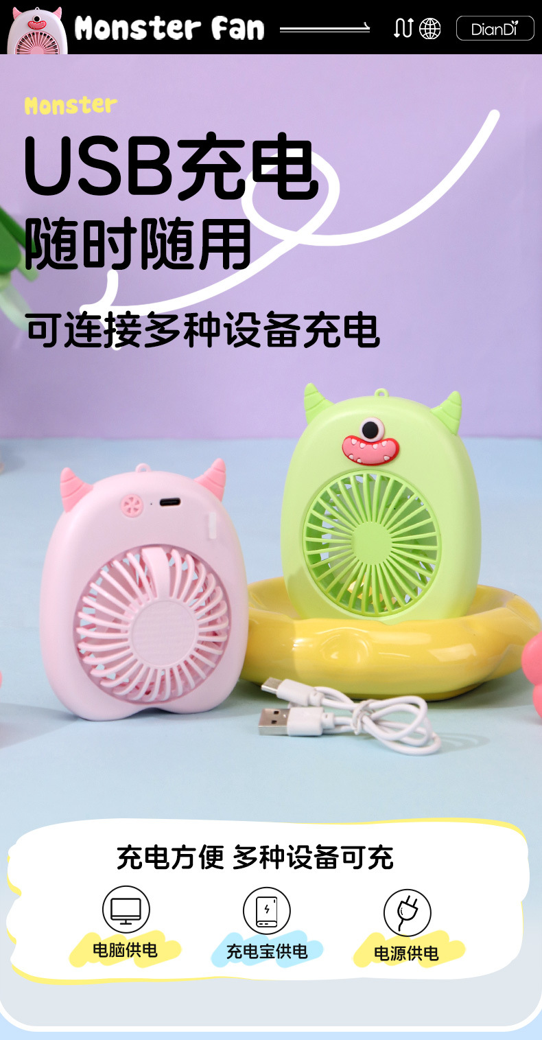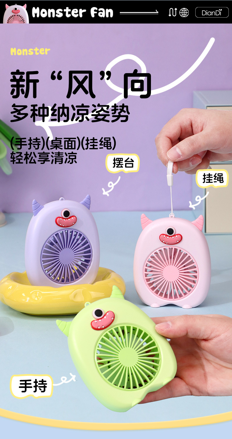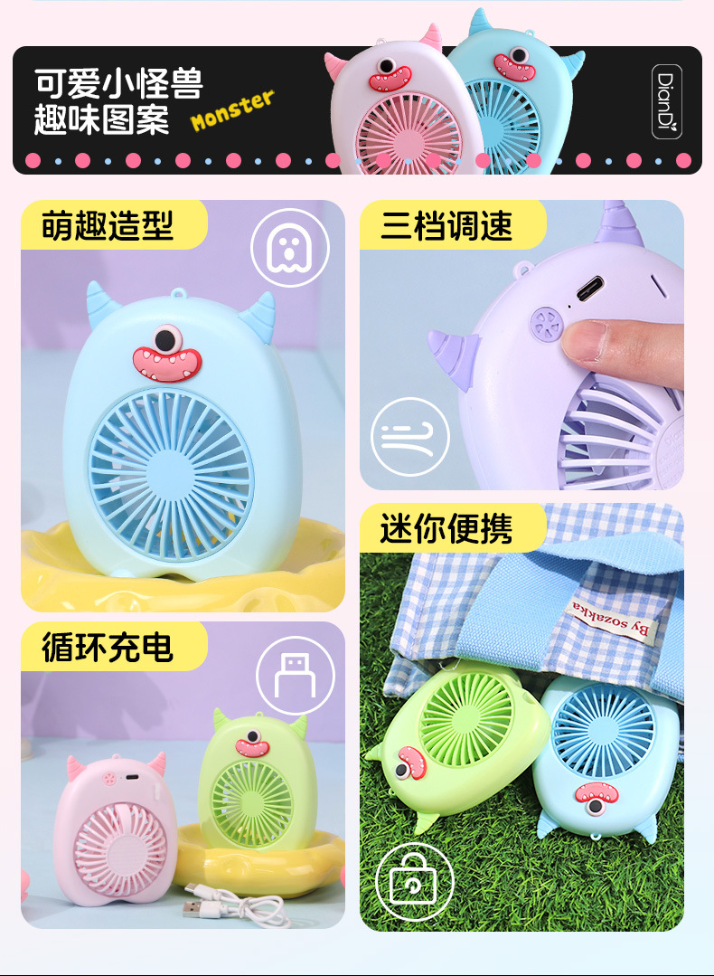 새로운 휴대용 미니 만화 작은 팬 usb 충전식 야외 휴대용 대형 바람 어린이 전기 FEN 팬 제조 업체스토어 가기