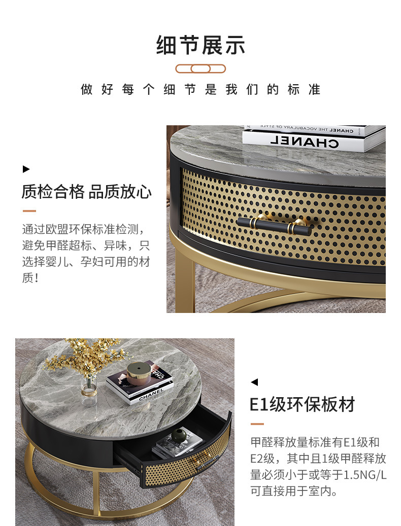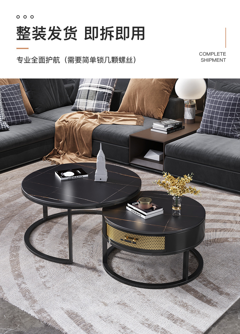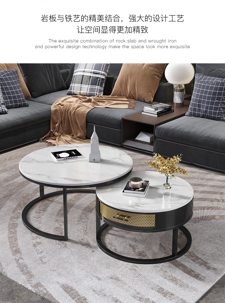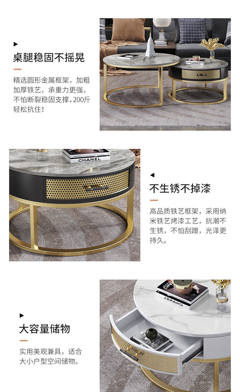 현대 간단한 거실 크기 라운드 커피 테이블 작은 아파트 서랍 작은 라운드 테이블 가정용 철 저장 작은 낮은 테이블