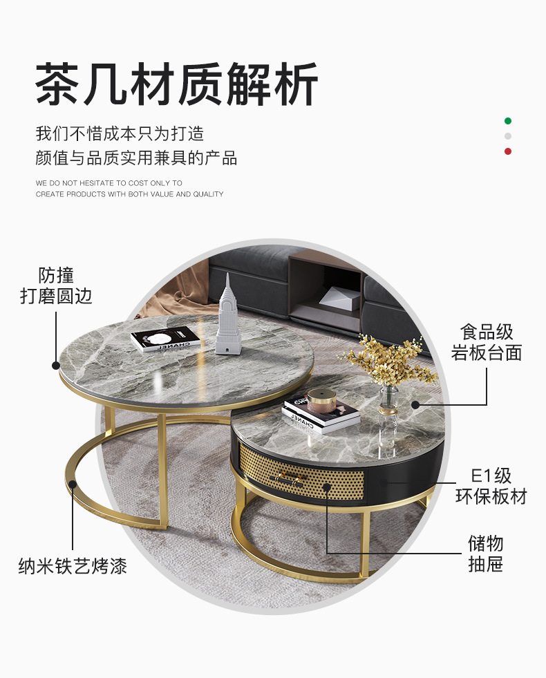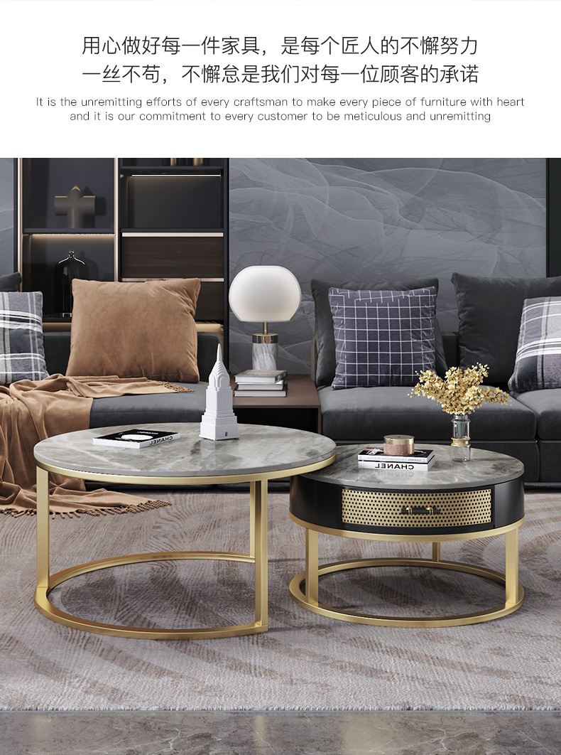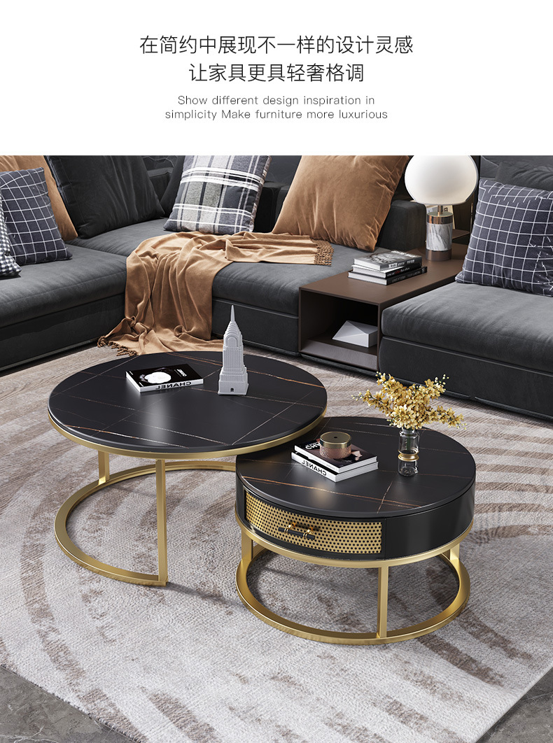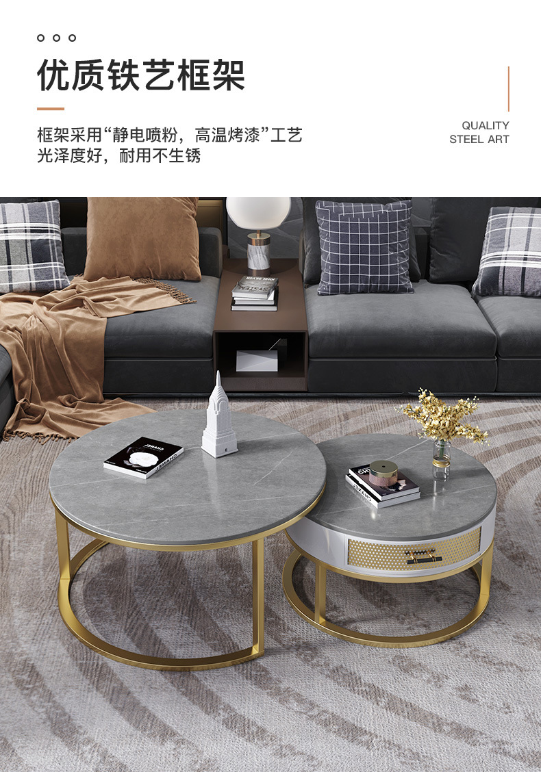 현대 간단한 거실 크기 라운드 커피 테이블 작은 아파트 서랍 작은 라운드 테이블 가정용 철 저장 작은 낮은 테이블