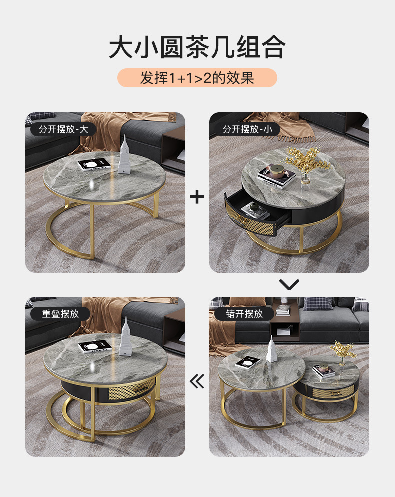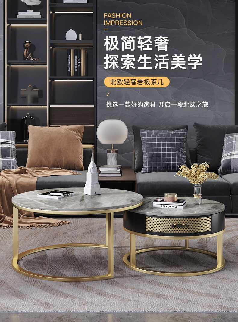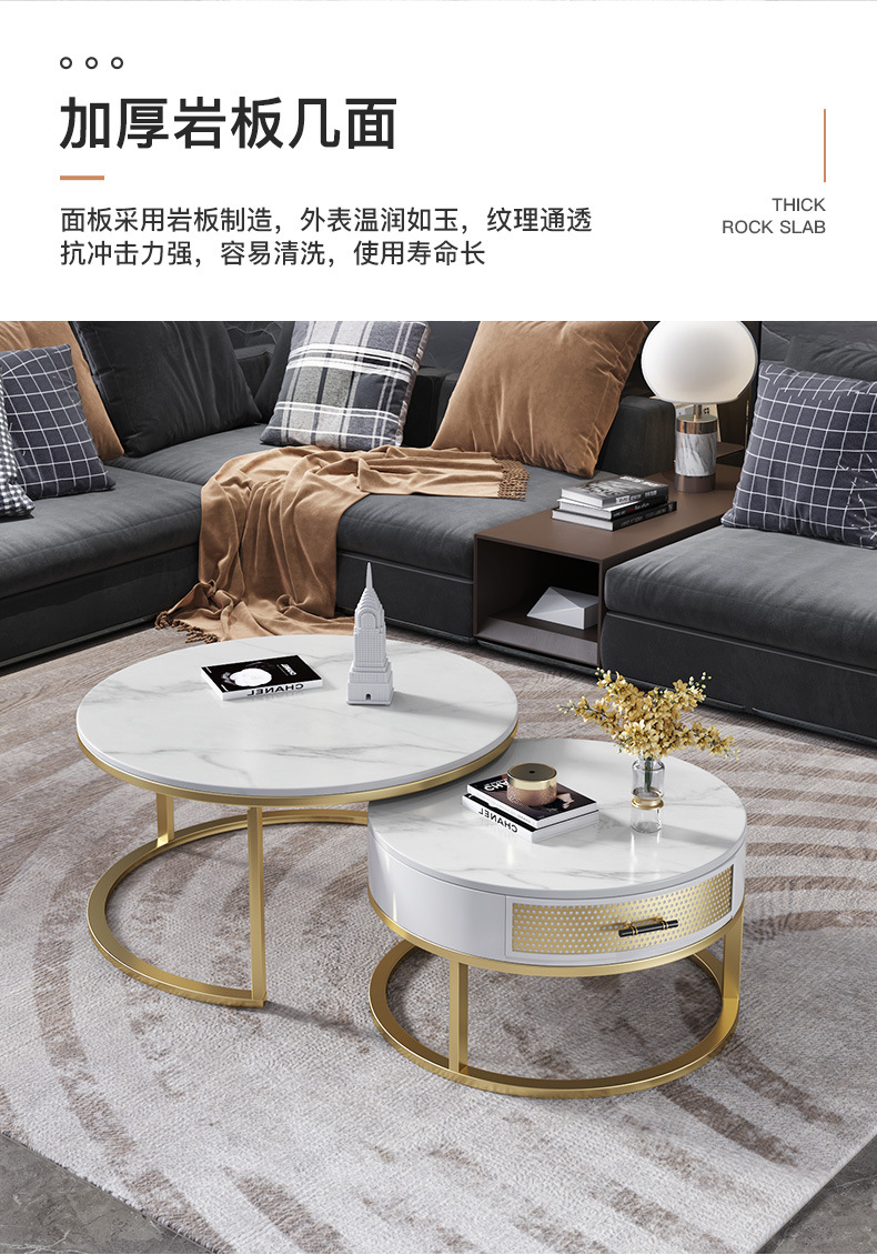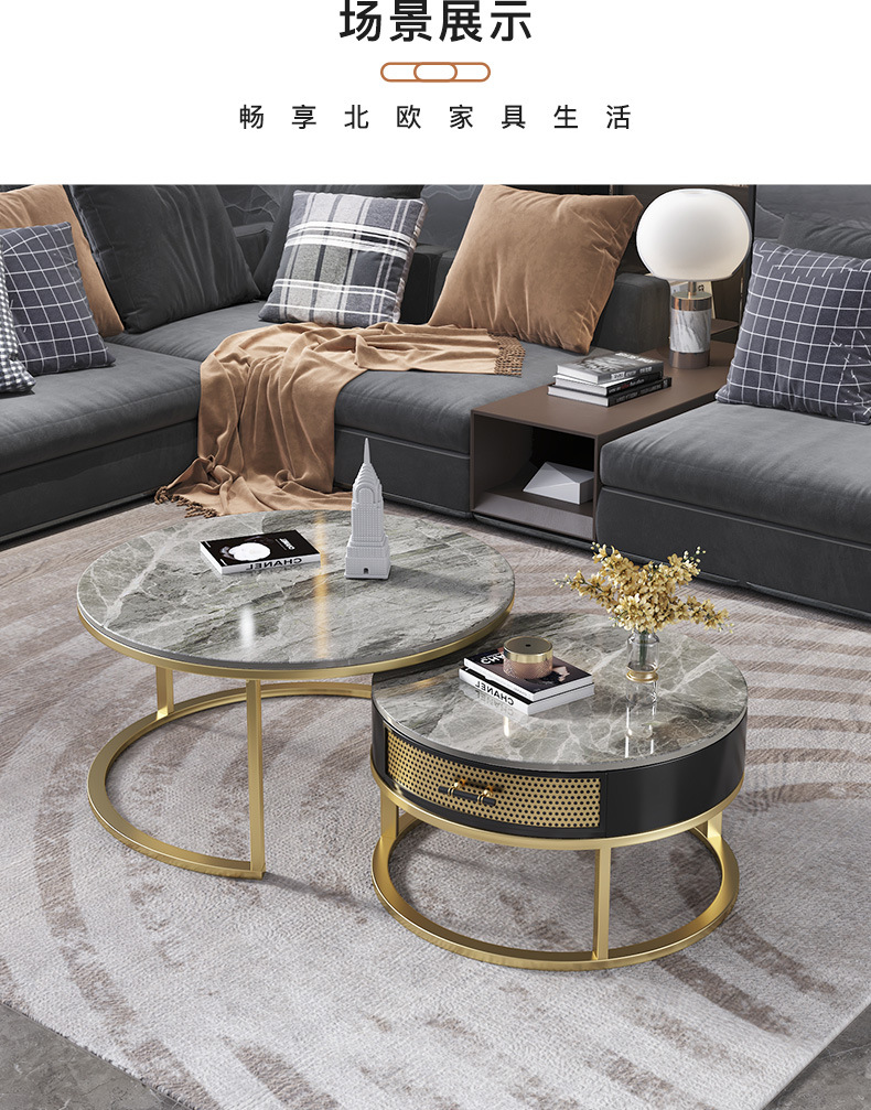 현대 간단한 거실 크기 라운드 커피 테이블 작은 아파트 서랍 작은 라운드 테이블 가정용 철 저장 작은 낮은 테이블스토어 가기