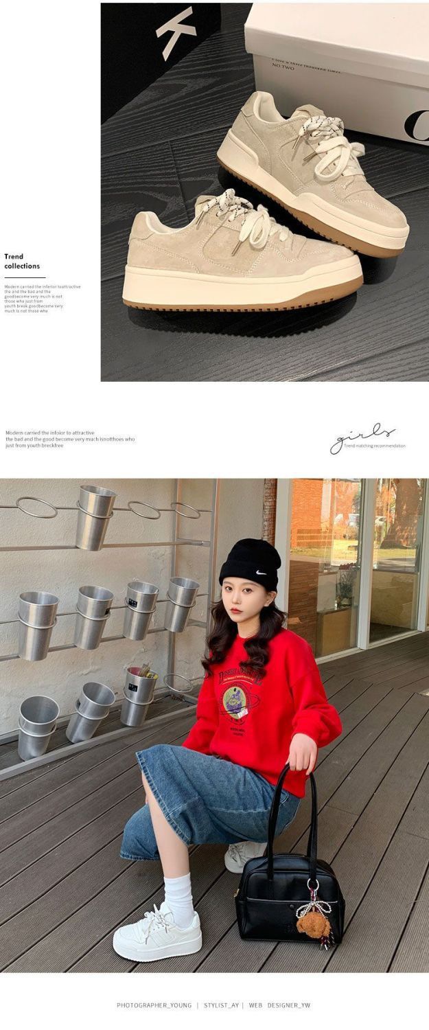 빈티지 틈새 보드 신발 여성용 트렌디 2025 봄 새로운 두꺼운 밑창 올 매치 캐주얼 스포츠 학생 패션 싱글 레이어 신발스토어 가기