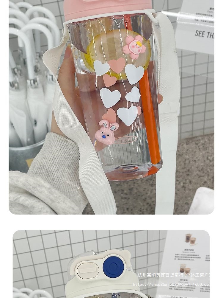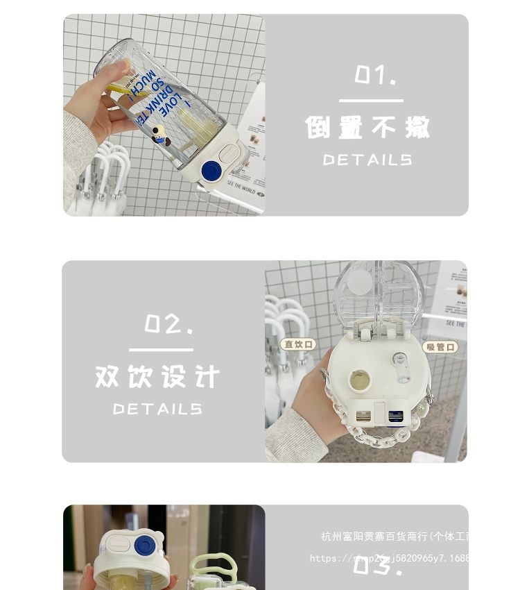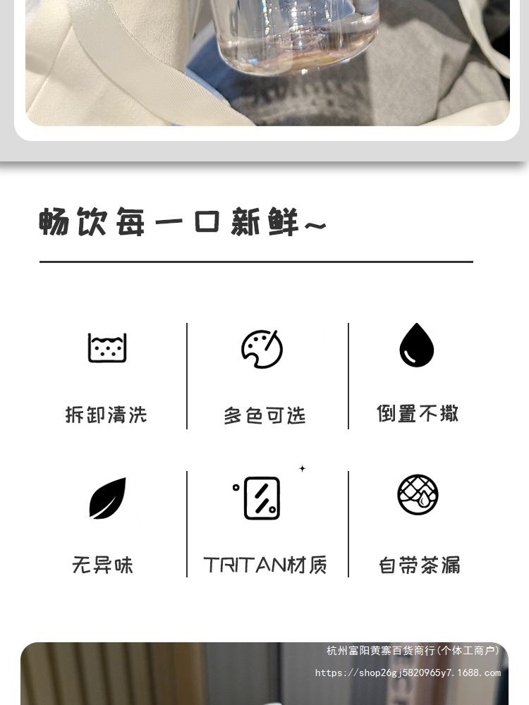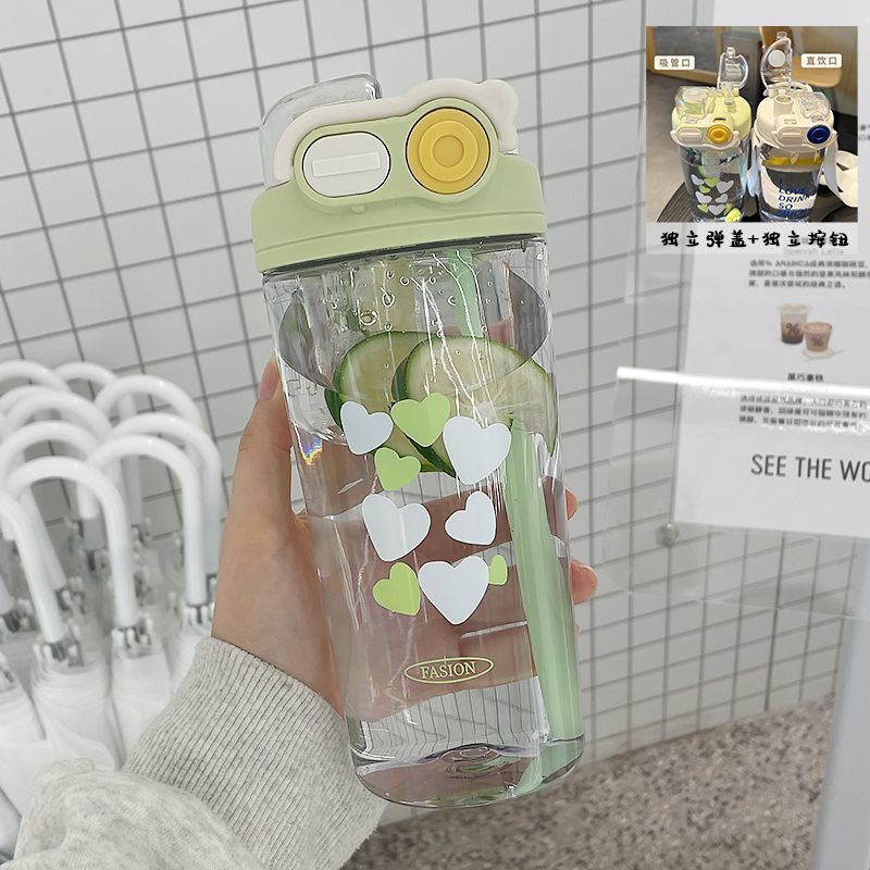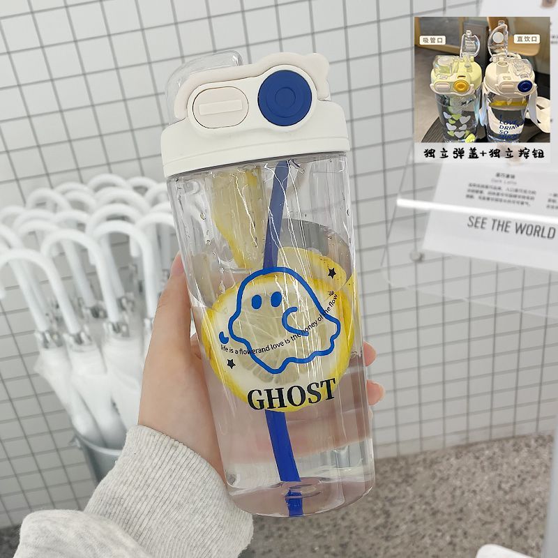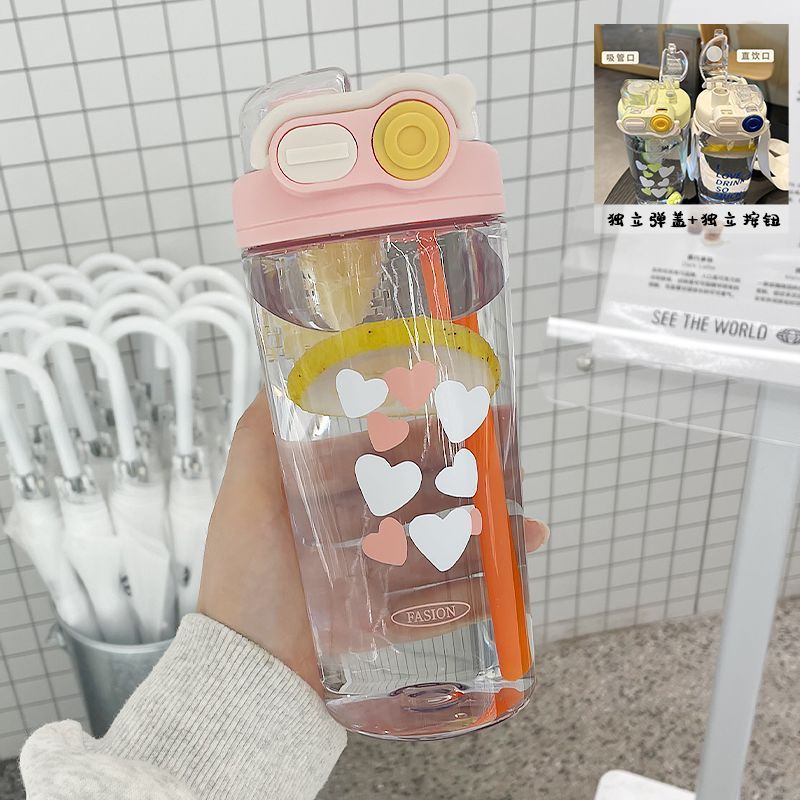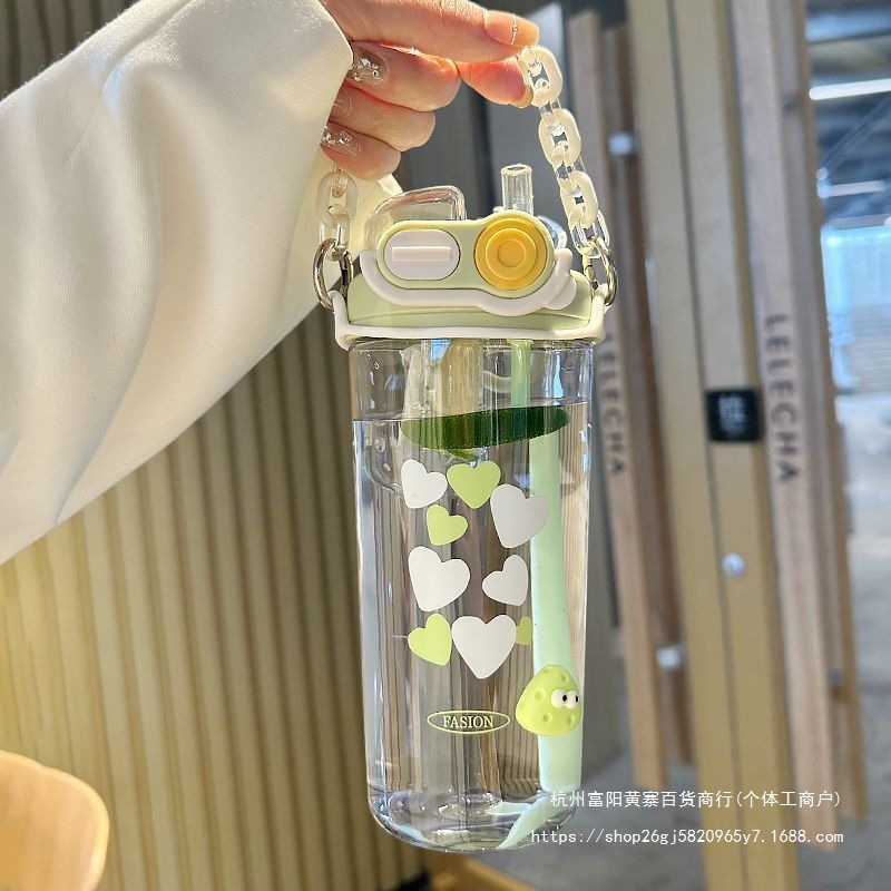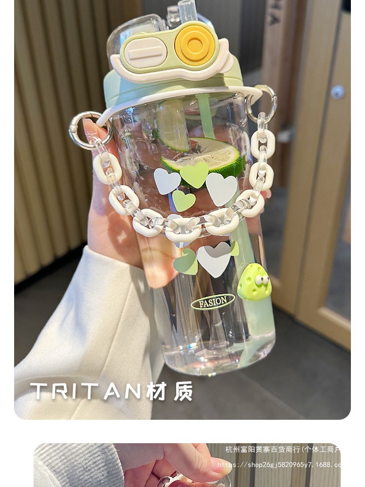 F 물 컵 여자 여름 귀여운 높은 가치 2025 새로운 트리탄 안티 드롭 물병 짚 대용량 컵스토어 가기